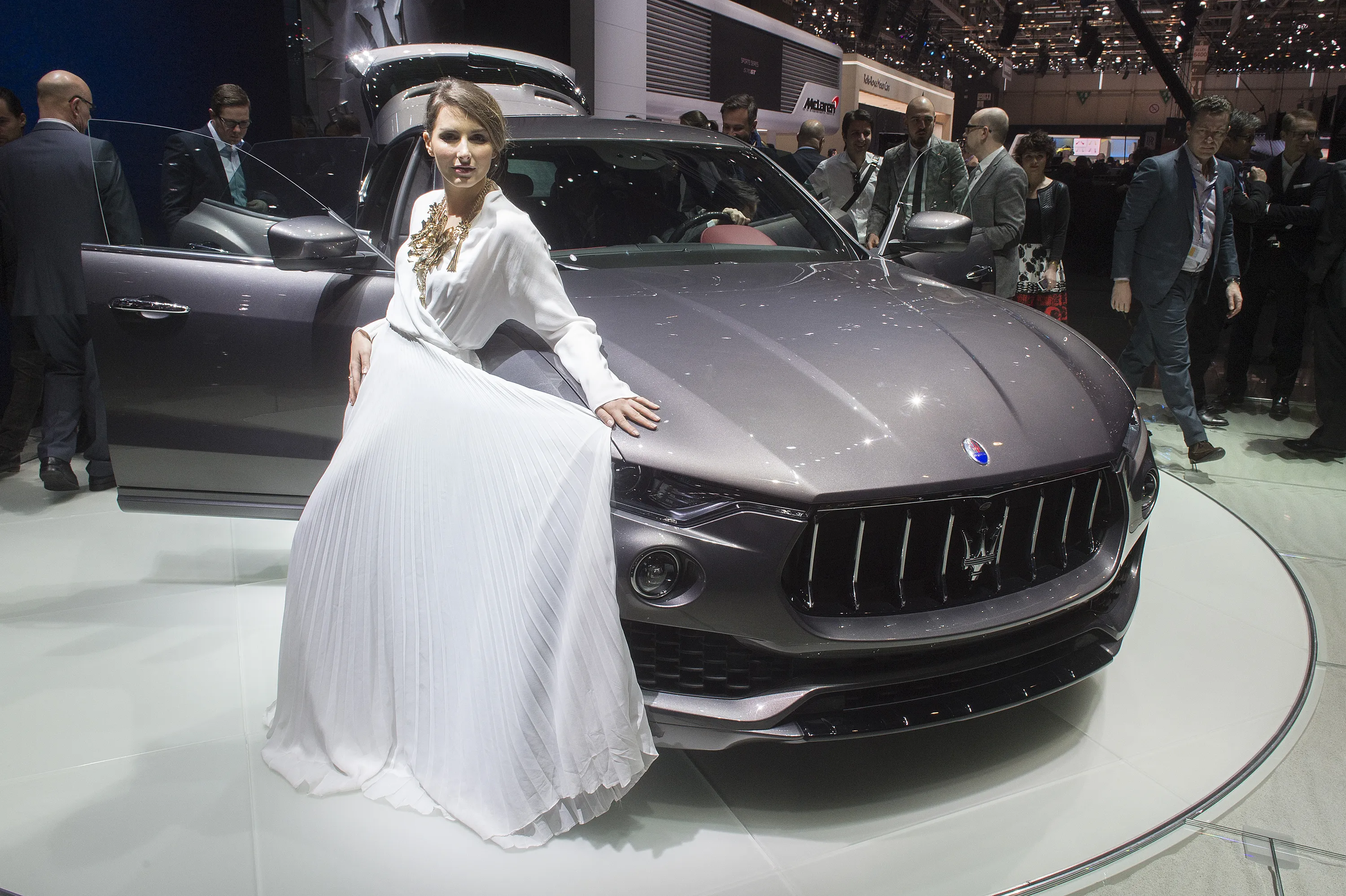 The New Maserati Levante is being presented during the press day at the 86th International Motor Show in Geneva, Switzerland, Tuesday, March 1, 2016. (Photo by Sandro Campardo/Keystone via AP Photo)