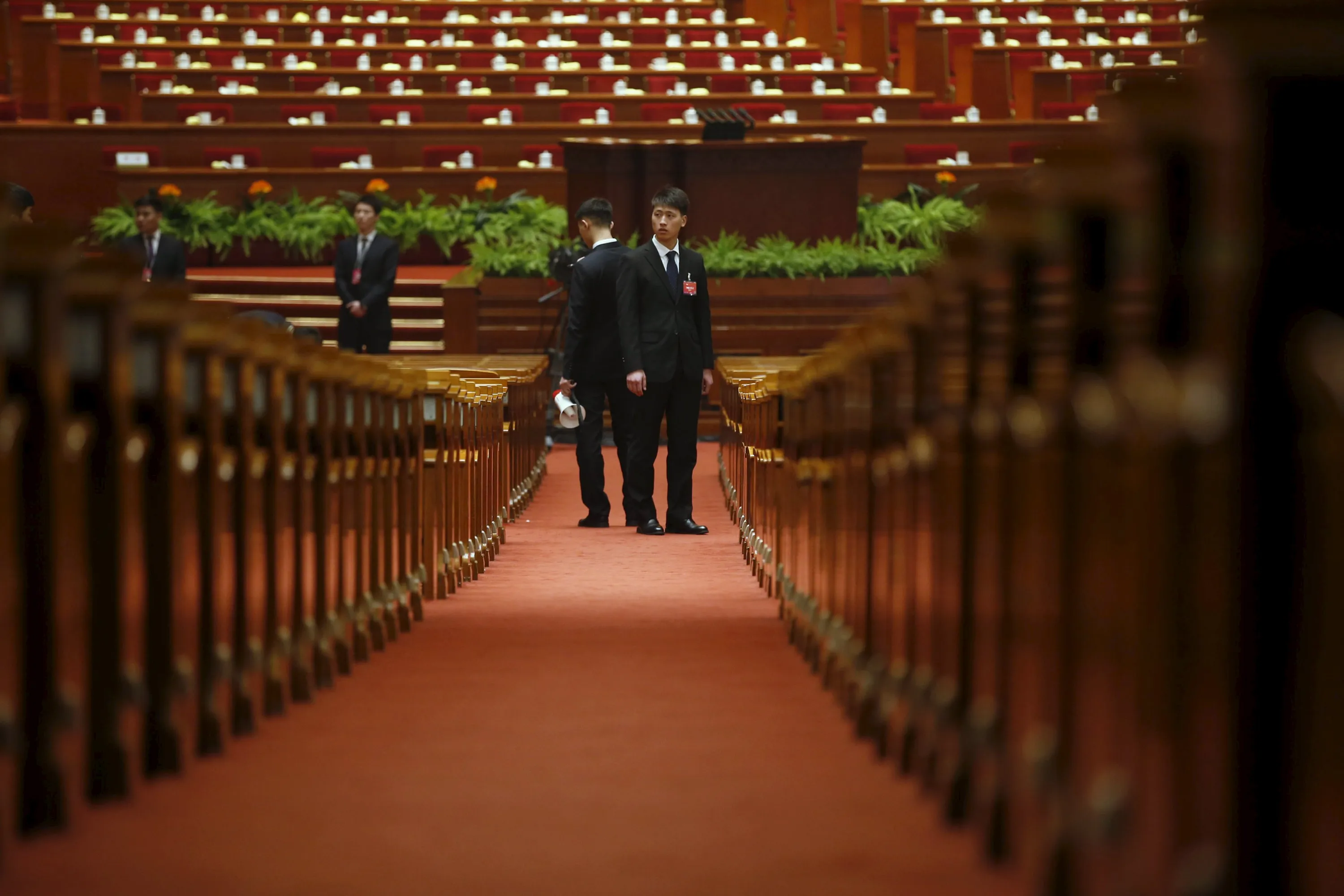 Security officers check inside the hall after the opening session of the Chinese People's Political Consultative Conference (CPPCC) at the Great Hall of the People in Beijing, March 3, 2016. (Photo by Kim Kyung-hoon/Reuters)