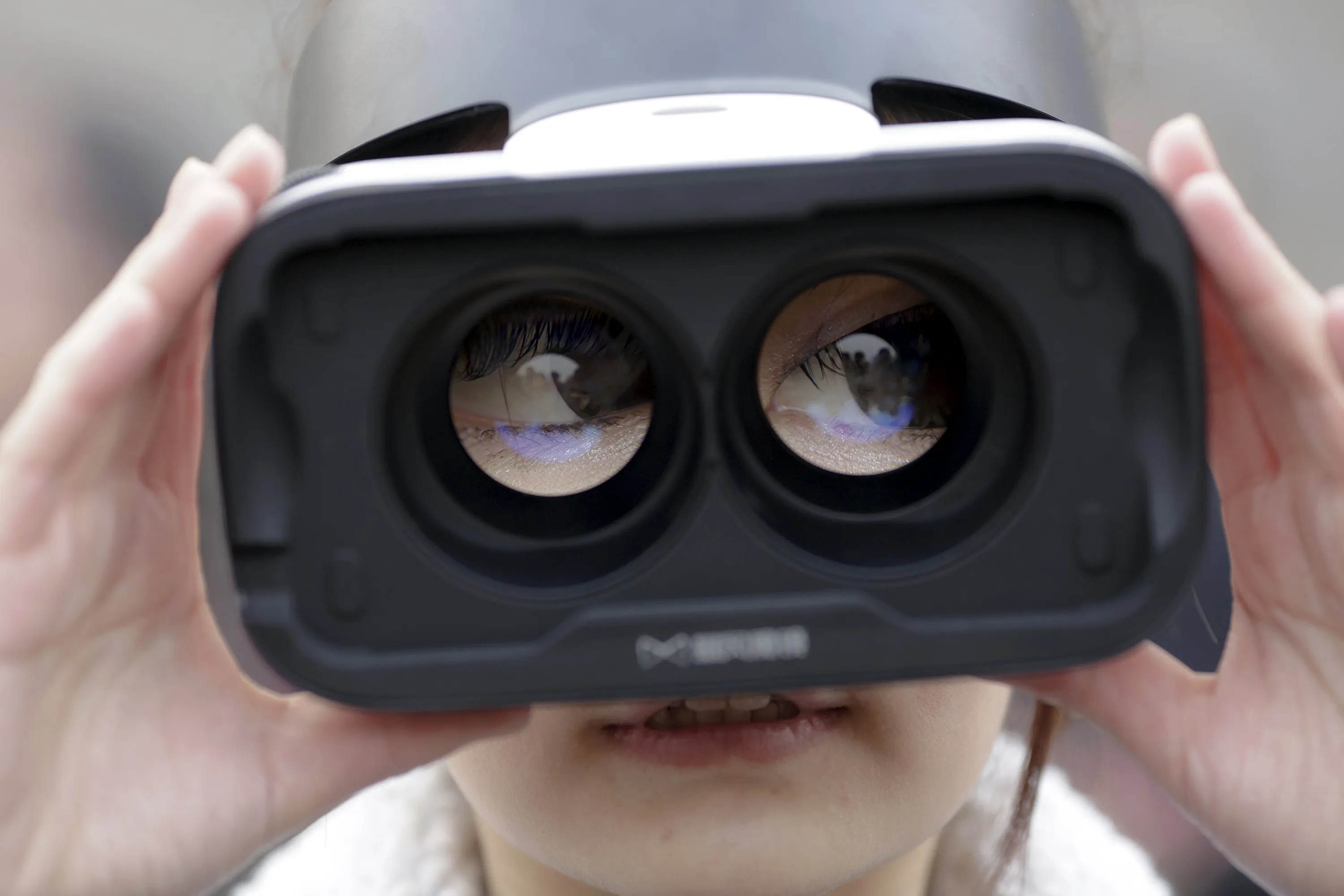 A girl wears a virtual reality headset outside the Great Hall of the People in Beijing after the opening session of the Chinese People's Political Consultative Conference (CPPCC) in Beijing, China, March 3, 2016. (Photo by Damir Sagolj/Reuters)