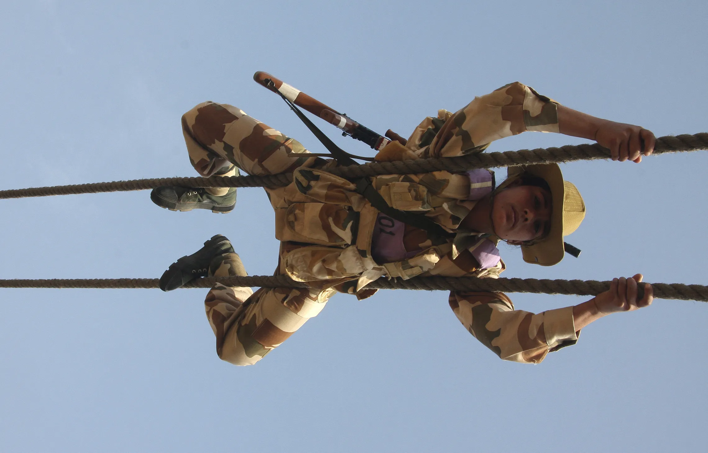 A female recruit from the Indo-Tibetan Border Police (ITBP) takes part in a training session in an ITBP training centre at Bhanu, Haryana, January 27, 2010. (Photo by Ajay Verma/Reuters)