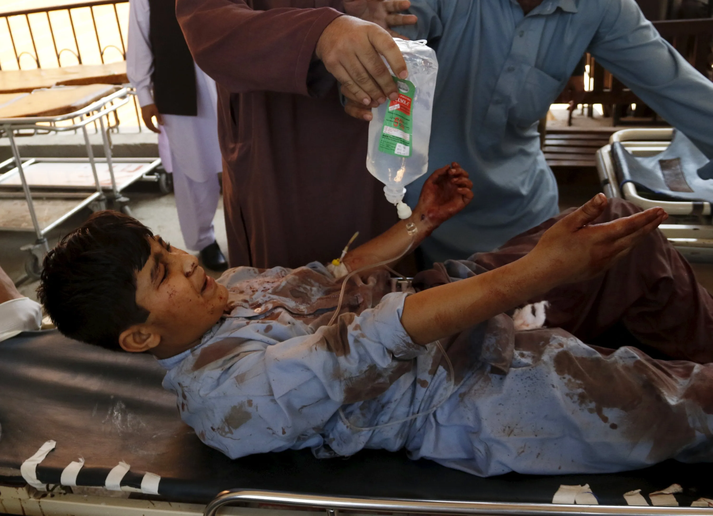 A boy injured during a suicide attack in Shabqadar is transported on a strecher at Lady Reading hospital in Peshawar, Pakistan March 7, 2016. (Photo by Khuram Parvez/Reuters)