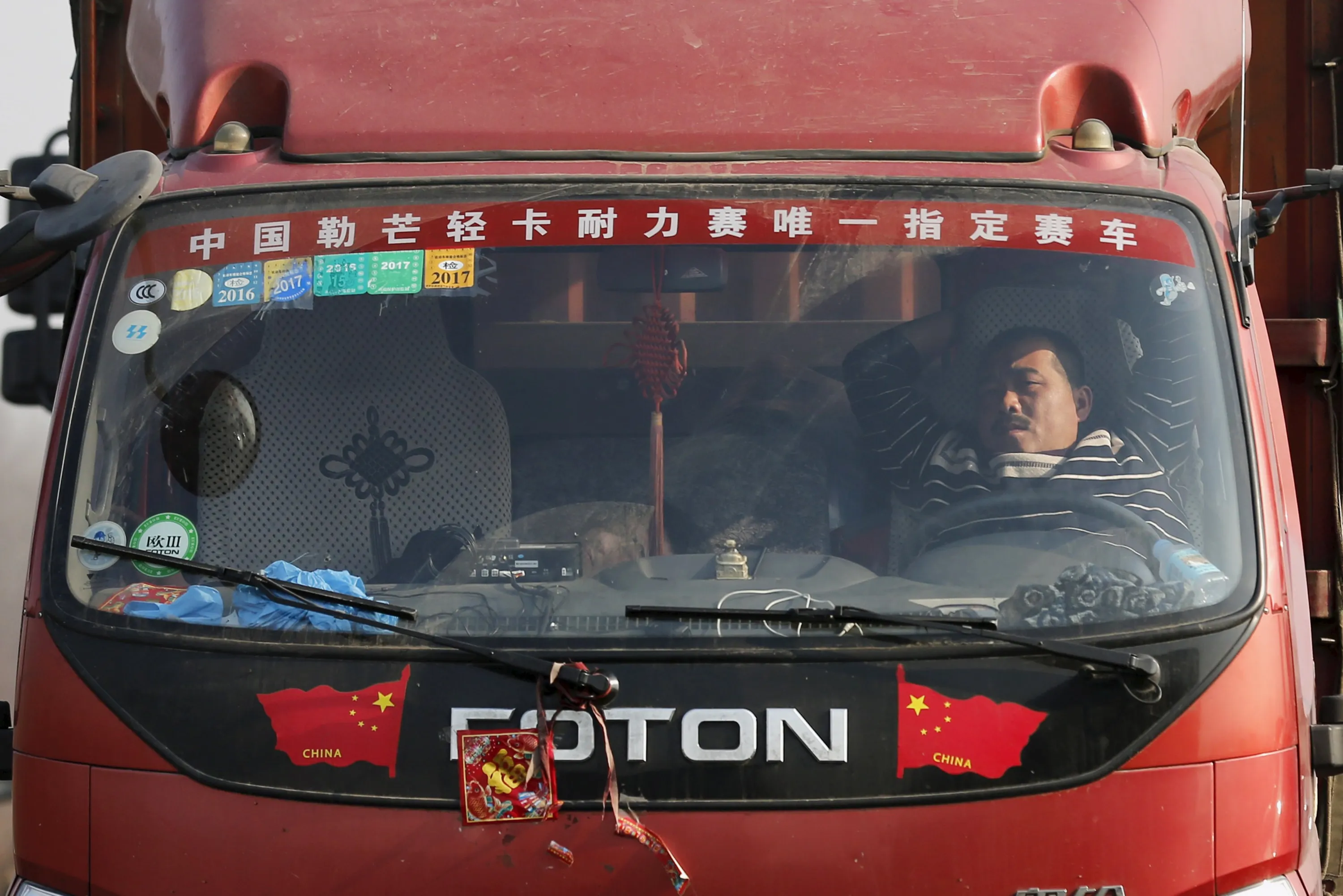 A man takes a nap in a truck as cars stop on Jinji Expressway located between Beijing and Tianjin, in a heavy traffic jam in Tianjin, China, March 2, 2016. (Photo by Kim Kyung-Hoon/Reuters)