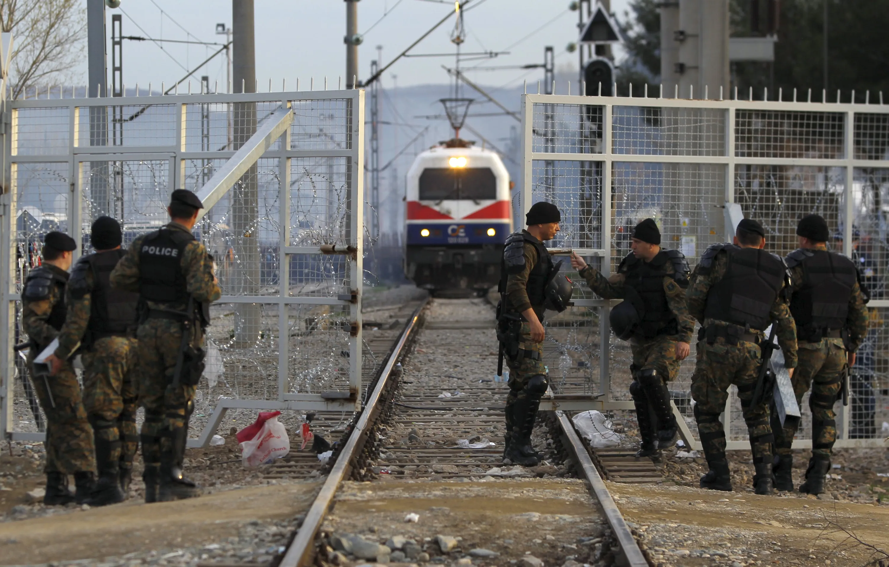 Macedonian police open a gate on the Macedonian-Greek border for a cargo train to pass near Gevgelija, Macedonia March 8, 2016. (Photo by Ognen Teofilovski/Reuters)