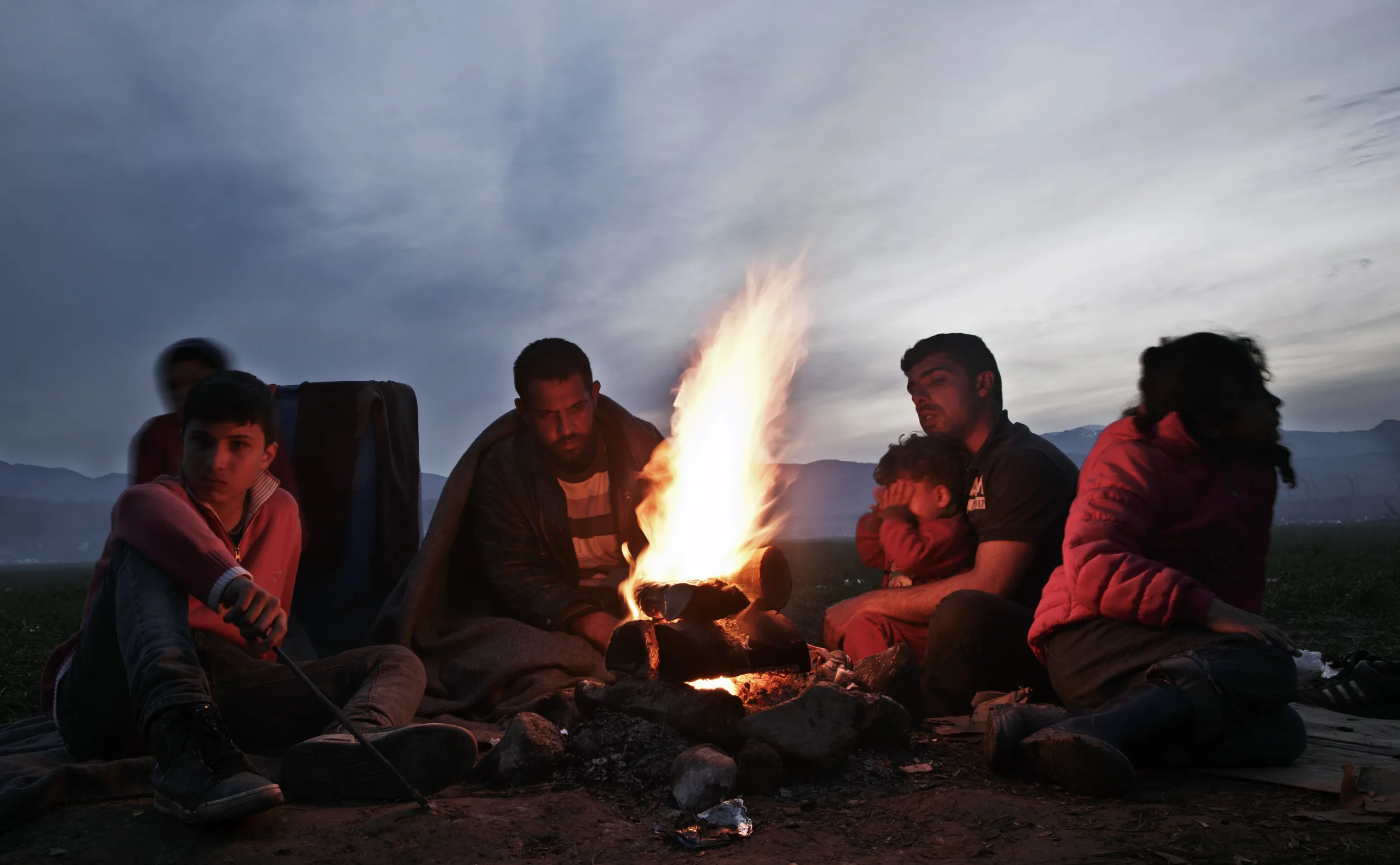 Migrants gather around fire at the northern Greek border station of Idomeni, Tuesday, March 8, 2016. Greek police officials say Macedonian authorities have imposed further restrictions on refugees trying to cross the border, saying only those from cities they consider to be at war can enter as up to 14,000 people are trapped in Idomeni, while another 6,000-7,000 are being housed in refugee camps around the region. (Photo by Visar Kryeziu/AP Photo)