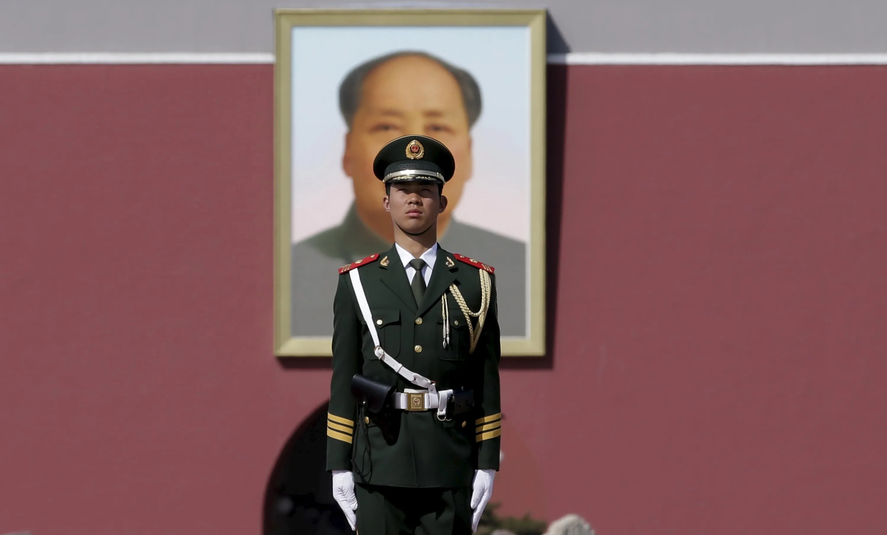 A Paramilitary policeman stands guard in front of a giant portrait of China's late Chairman Mao Zedong on the Tiananmen Gate ahead of the second plenary session of the National People's Congress (NPC) in Beijing, China March 9, 2016. (Photo by Jason Lee/Reuters)