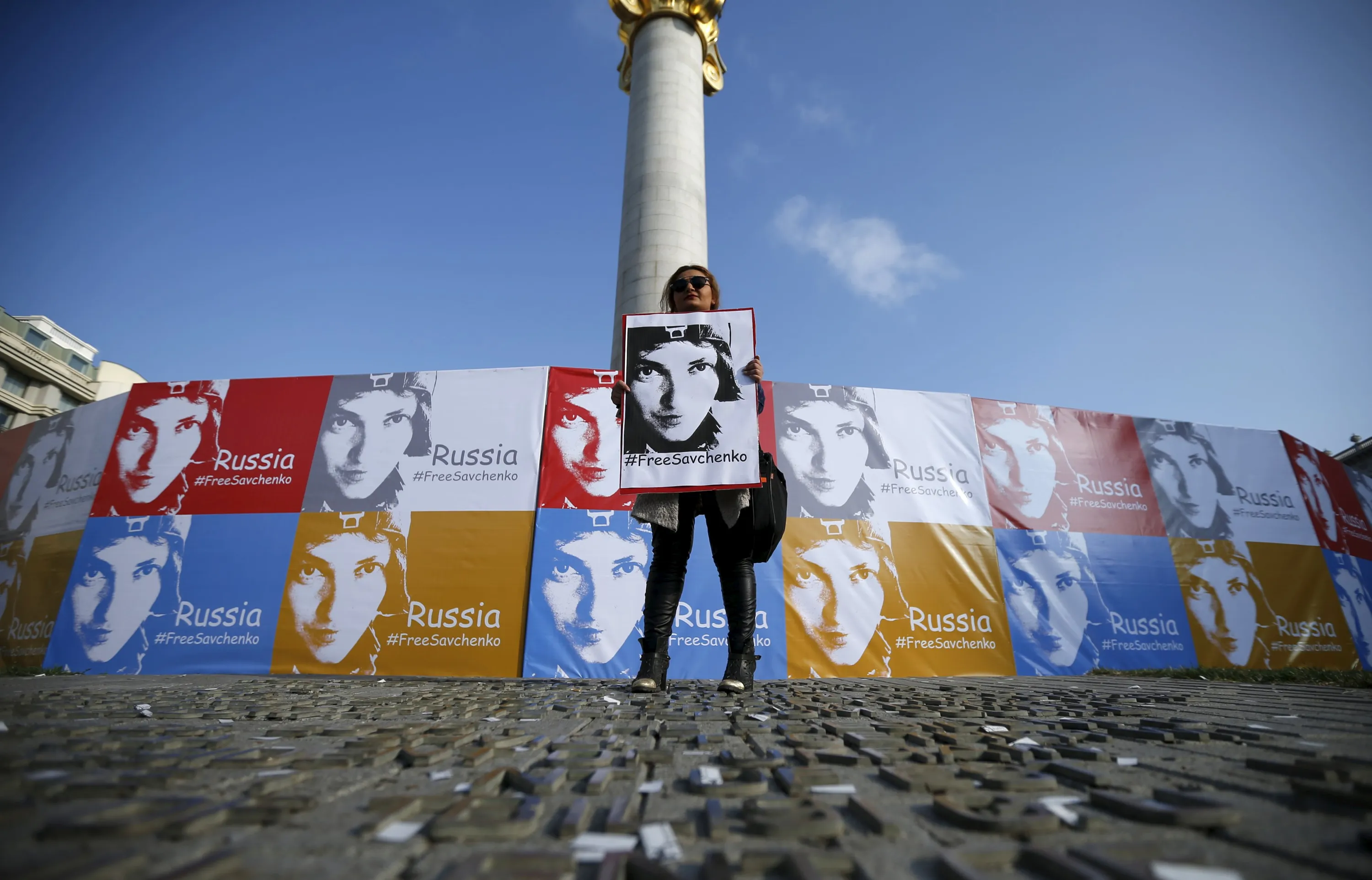 A woman attends a rally demanding the liberation of Ukrainian army pilot Nadezhda Savchenko by Russia, at the Freedom Square in Tbilisi, Georgia, March 9, 2016. (Photo by David Mdzinarishvili/Reuters)