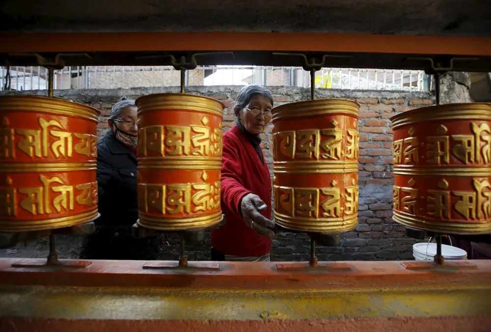 Tibetan women spin prayer wheels at the Tibetan Refugee camp in Lalitpur, Nepal, March 10, 2016. Tibetans mark March 10 as their uprising day. (Photo by Navesh Chitrakar/Reuters)