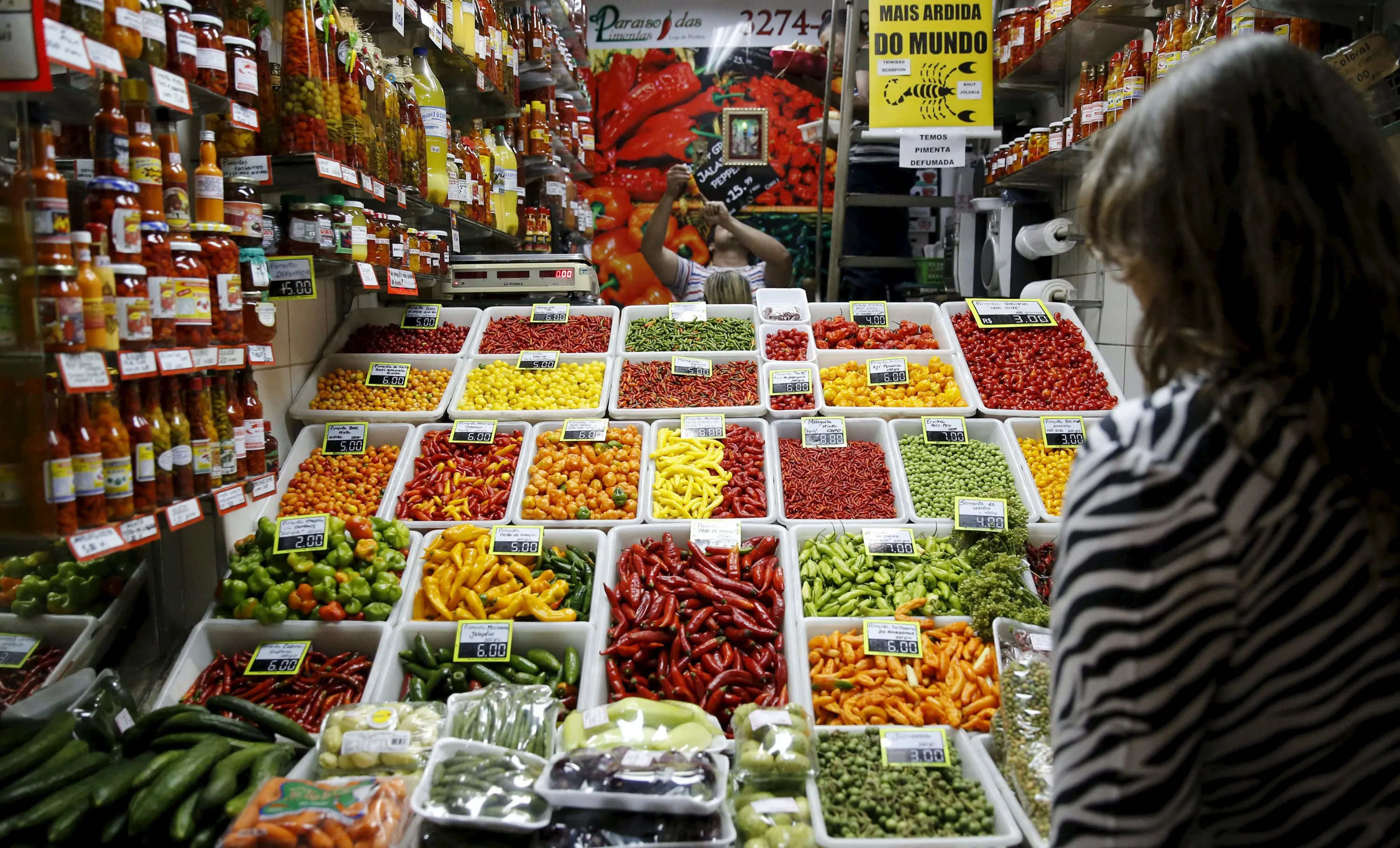 A woman looks at chillies and peppers at a market in Belo Horizonte, Brazil in this June 30, 2014 file photo. (Photo by Toru Hanai/Reuters)