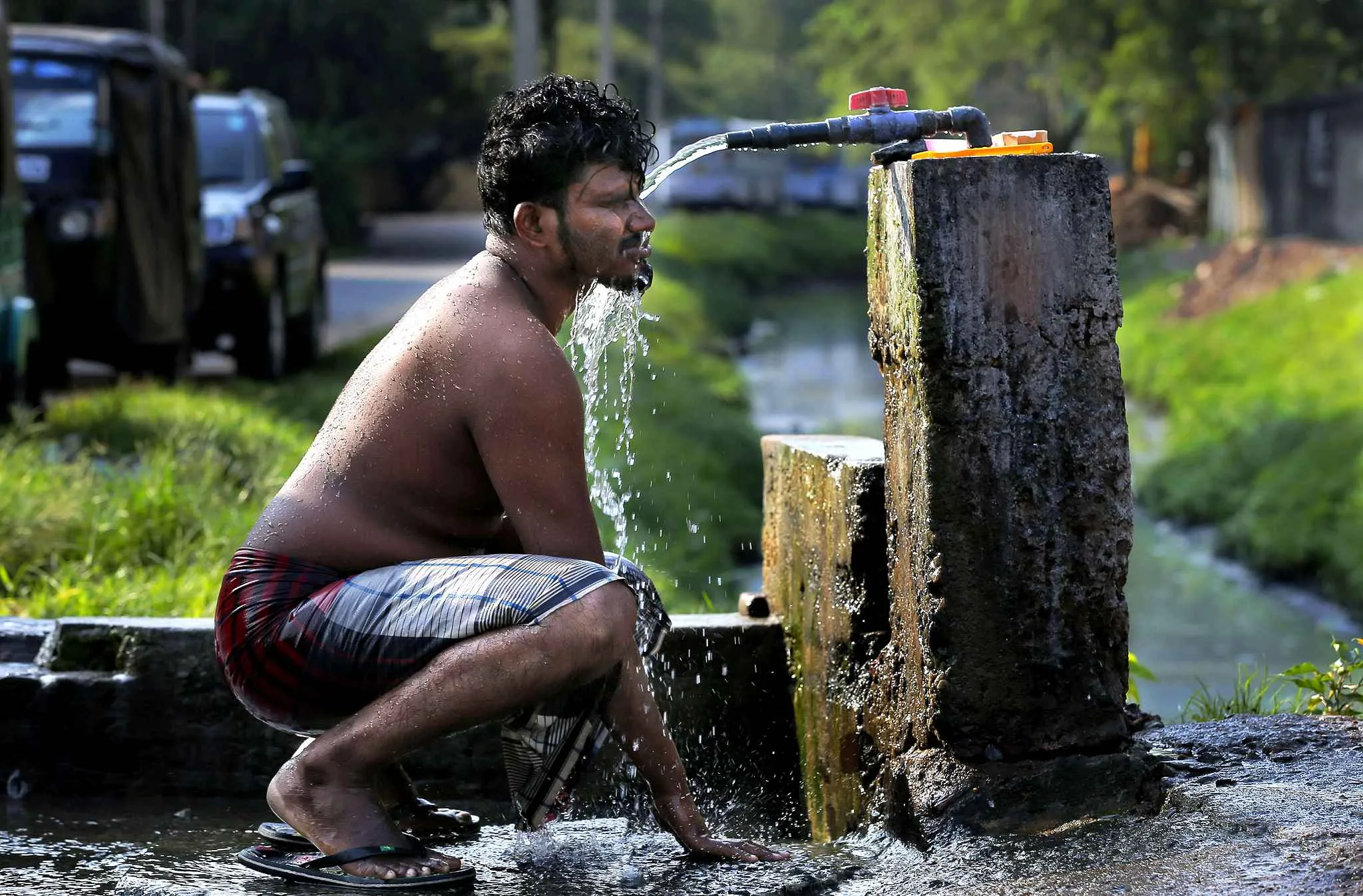 A Sri Lankan man takes a bath from a roadside tap to cool himself off from the rising temperature in Colombo, Sri Lanka, Monday, March 14, 2016. (Photo by Eranga Jayawardena/AP Photo)
