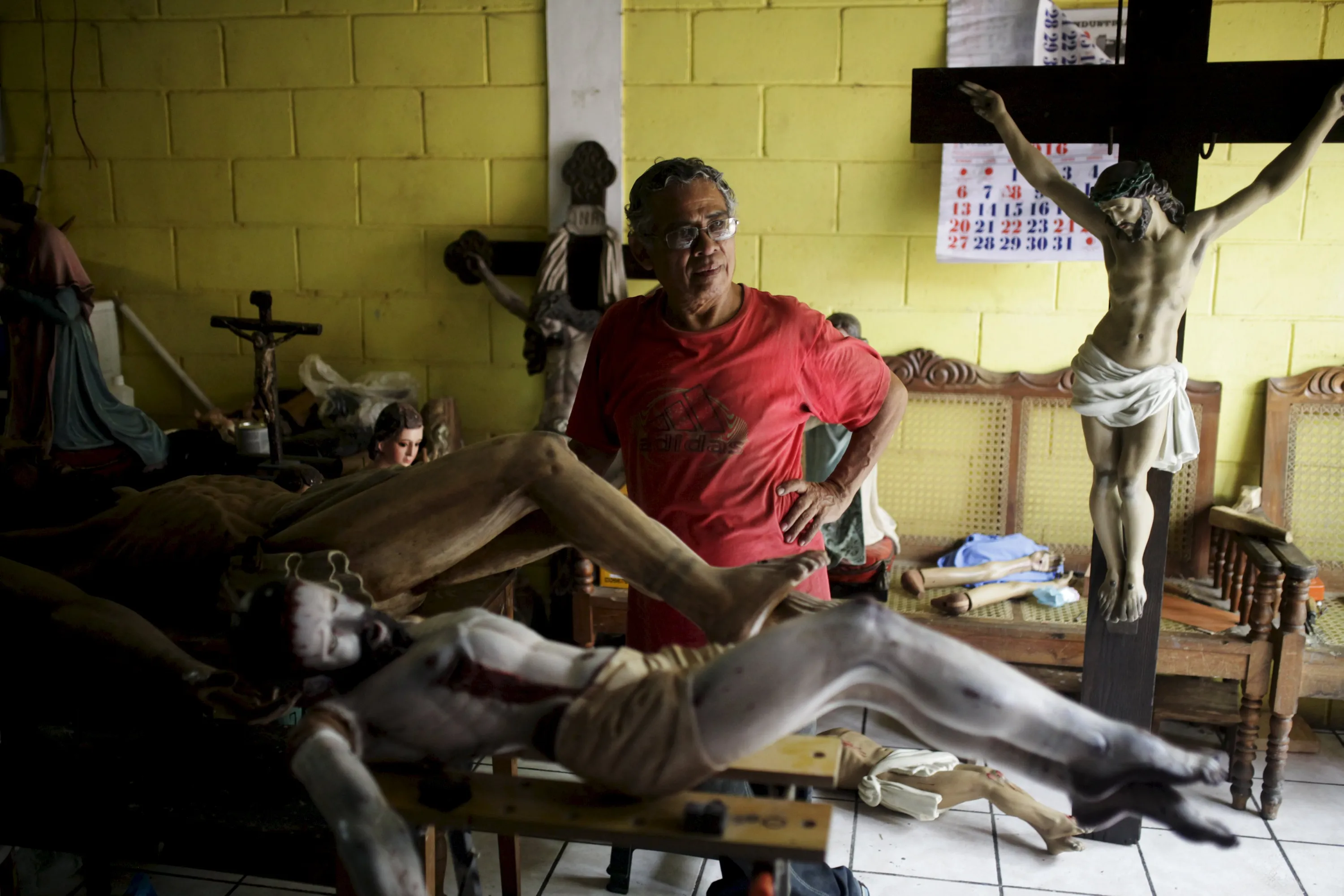 Manuel de Jesus Quilizapa works on a statue of El Jesus Nazareno in his workshop in Izalco, El Salvador March 11, 2016. Quilizapa, who took over the business from his father, is one of a small number of artists still working on traditional religious art in El Salvador. (Photo by Jose Cabezas/Reuters)