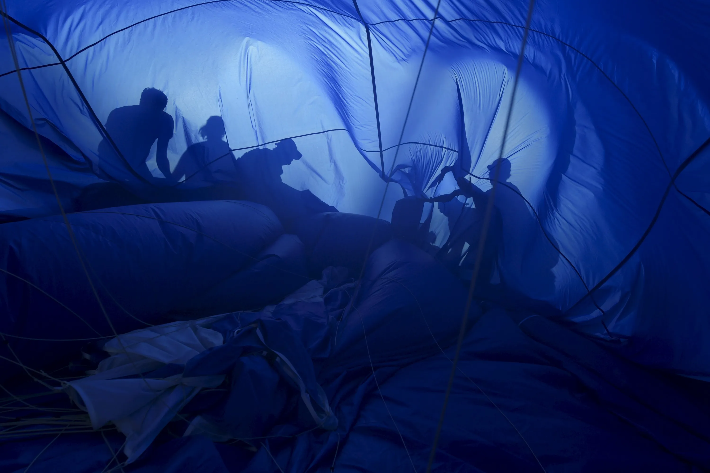 A hot air balloon is prepared for flight on the 30th anniversary of the Canberra Balloon Festival in Australia's capital, March 14, 2016. (Photo by Lukas Coch/Reuters/AAP)