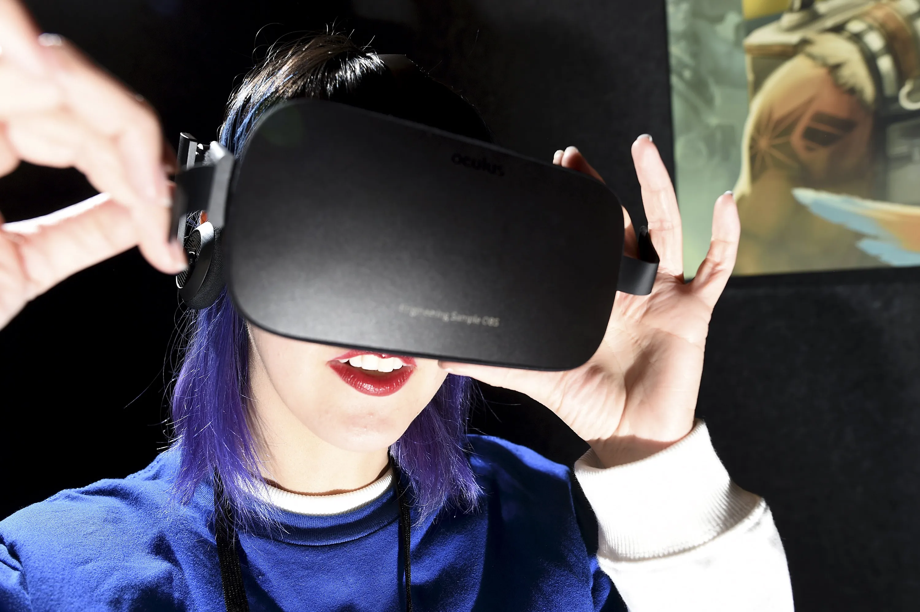 Kaitlyn Innis, a brand ambassador for Oculus, plays “Dragon Front” by High Voltage Software during the Oculus Game Day VR event in San Francisco, California March 15, 2016. (Photo by Noah Berger/Reuters)