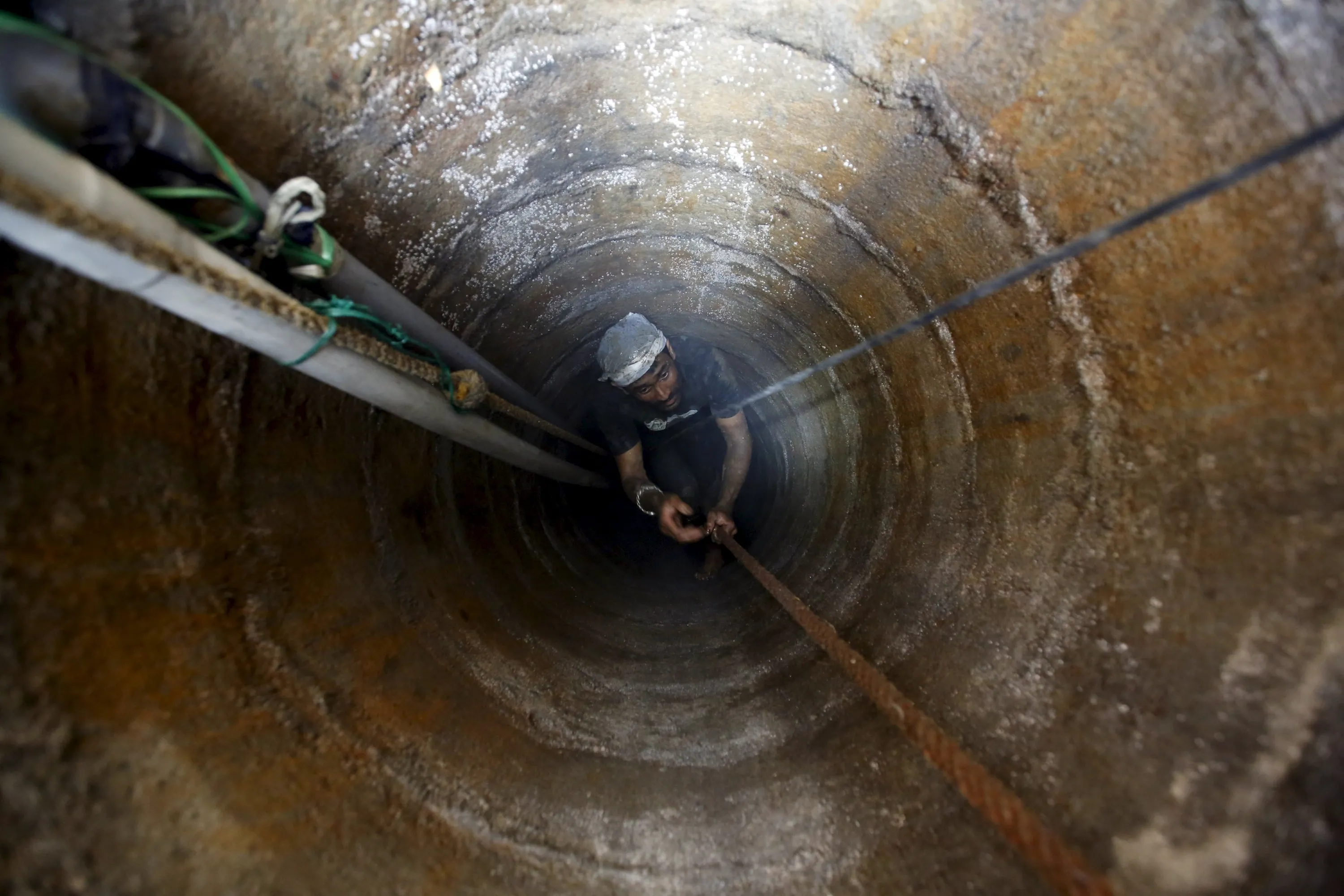 Ram Kumar Khadka, 36, climbs out of a well after cleaning it in Kathmandu, Nepal February 22, 2016. Khadka has worked as a cleaner for 12 years and earns around $18 a day. (Photo by Navesh Chitrakar/Reuters)