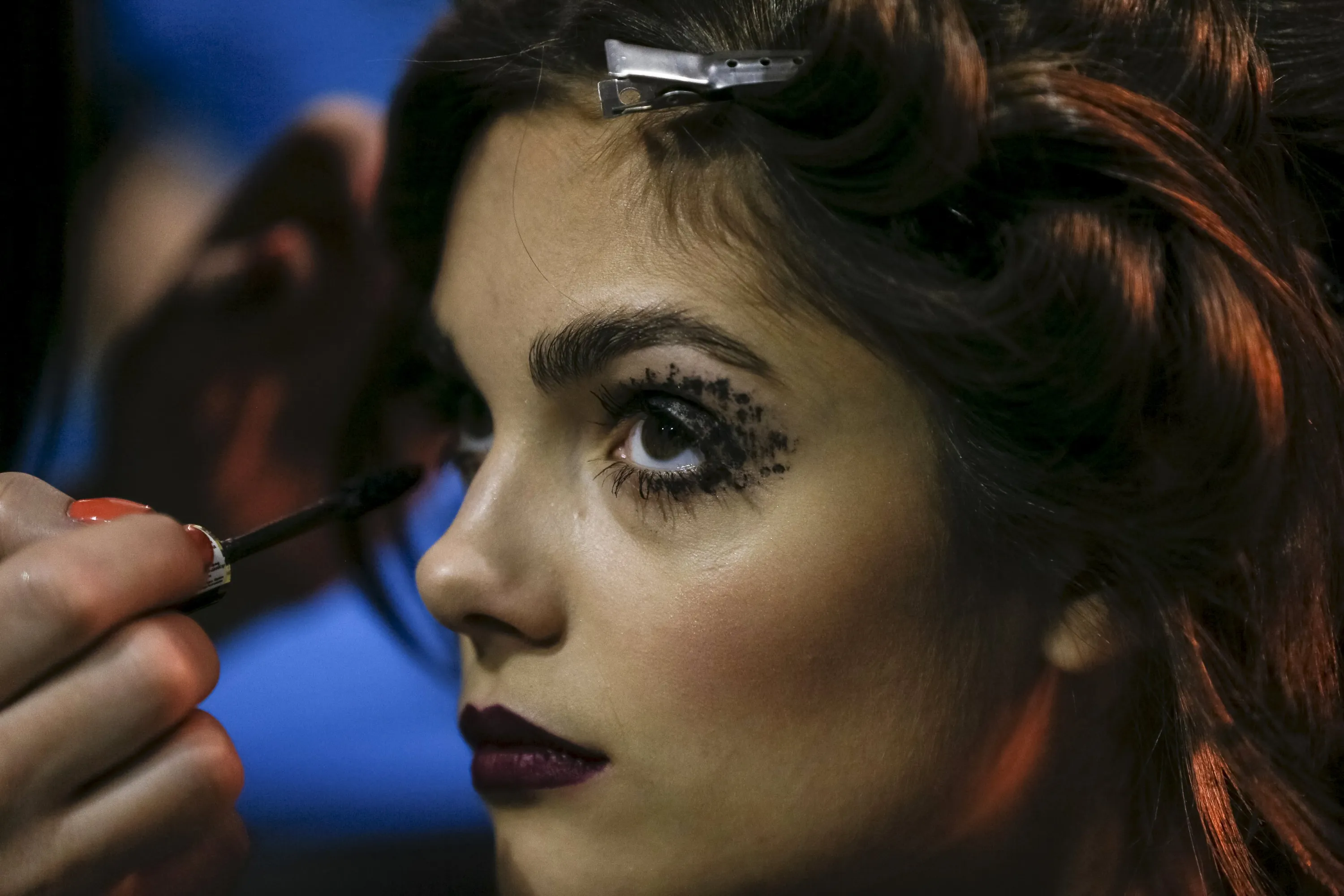 A model has her makeup applied backstage at Ukrainian Fashion Week in Kiev, March 18, 2016. (Photo by Gleb Garanich/Reuters)