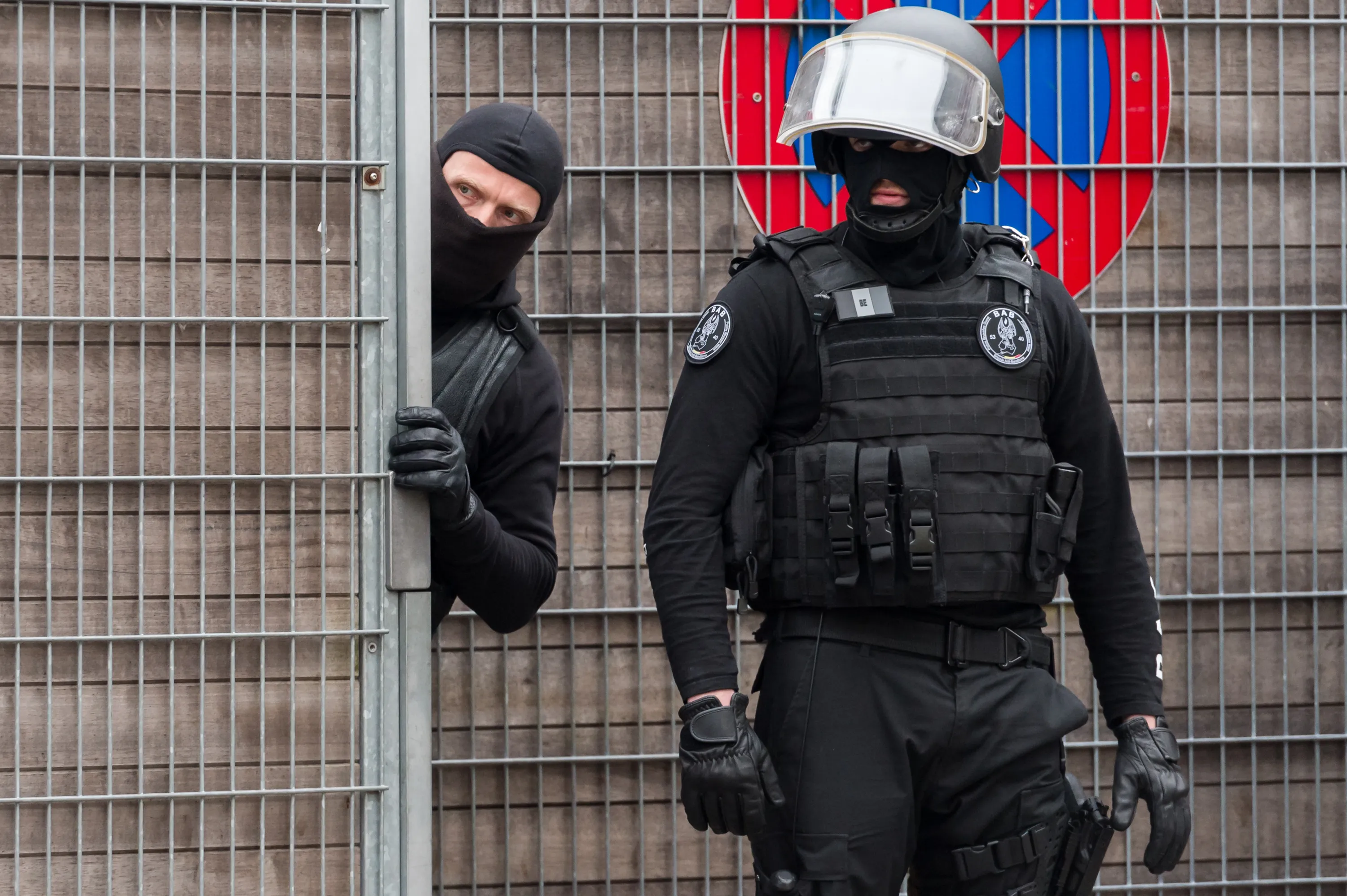 Police officers guard an entrance of a school during a raid in the Molenbeek neighborhood of Brussels, Belgium, Friday March 18, 2016. Police have descended in force to search a residence in the Molenbeek, and Belgian media reported gunshots had been fired. RTBF French-language TV reported late Friday afternoon that two people had been wounded, and that one might be Paris attacks fugitive Salah Abdeslam. (Photo by Geert Vanden Wijngaert/AP Photo)