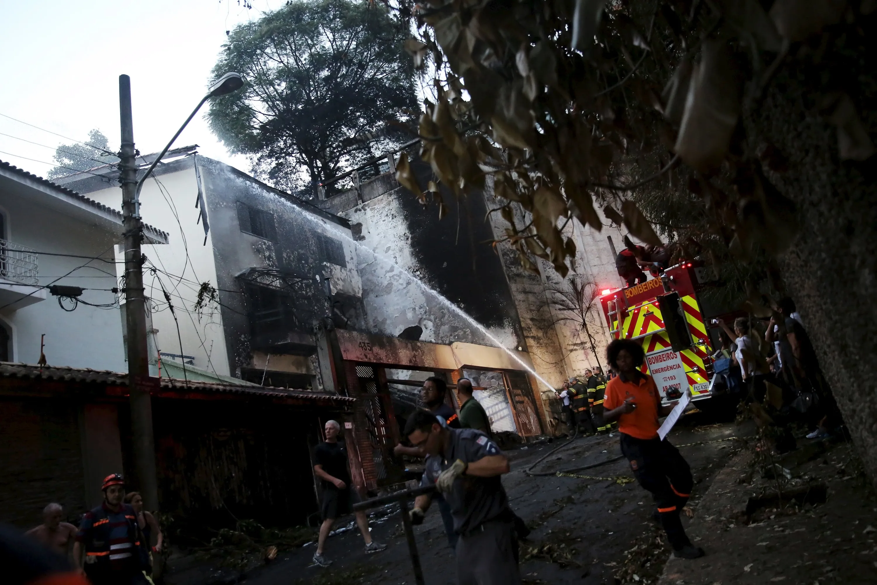 Firefighters try to extinguish a fire where a small airplane crashed into the house in São Paulo, Brazil, March 19, 2016. A small plane owned by the former chief executive of mining giant Vale has crashed into a residential area near an airport in the Brazilian city of São Paulo, killing the businessman and six others, local officials say. One person on the ground was also injured. The accident happened at around 3:30 p.m. local time on Saturday when the plane, believed to be a Comp Air 9 aircraft, went down at the edges of a neighborhood in Case Verde district, just outside Campo de Marte Airport in São Paulo. (Photo by Nacho Doce/Reuters)