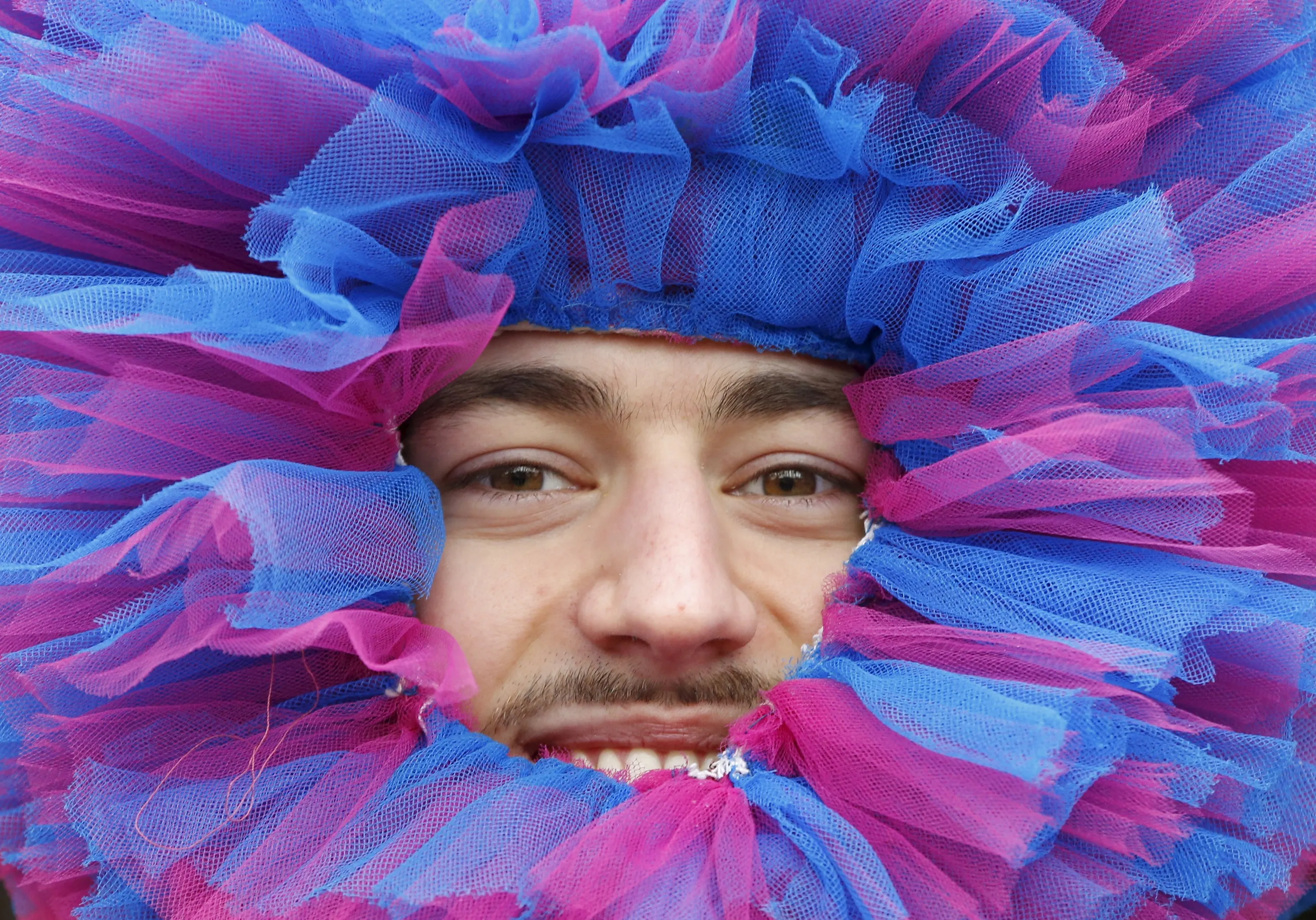 A participant of the so-called “Carnival of Migrants” takes part in a rally to protest against racism in Berlin, Germany, March 20, 2016. (Photo by Fabrizio Bensch/Reuters)