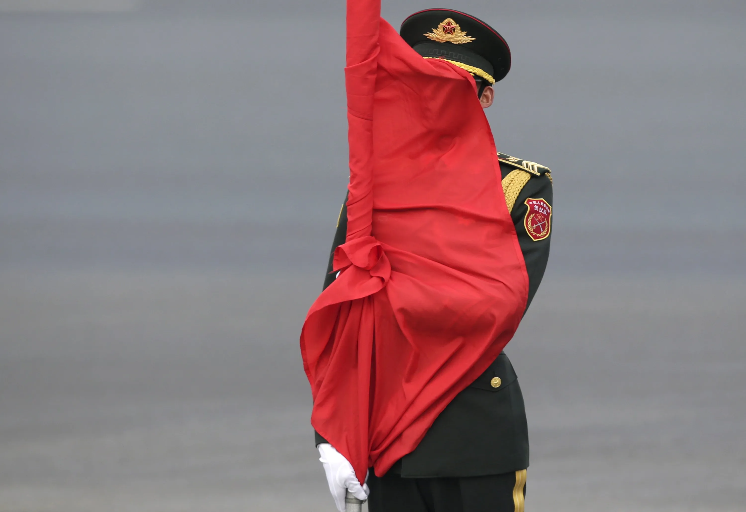 A soldier from Chinese honour guards collects a red flag after a welcoming ceremony for German President Joachim Gauck at the Great Hall of the People in Beijing, China March 21, 2016. (Photo by Jason Lee/Reuters)