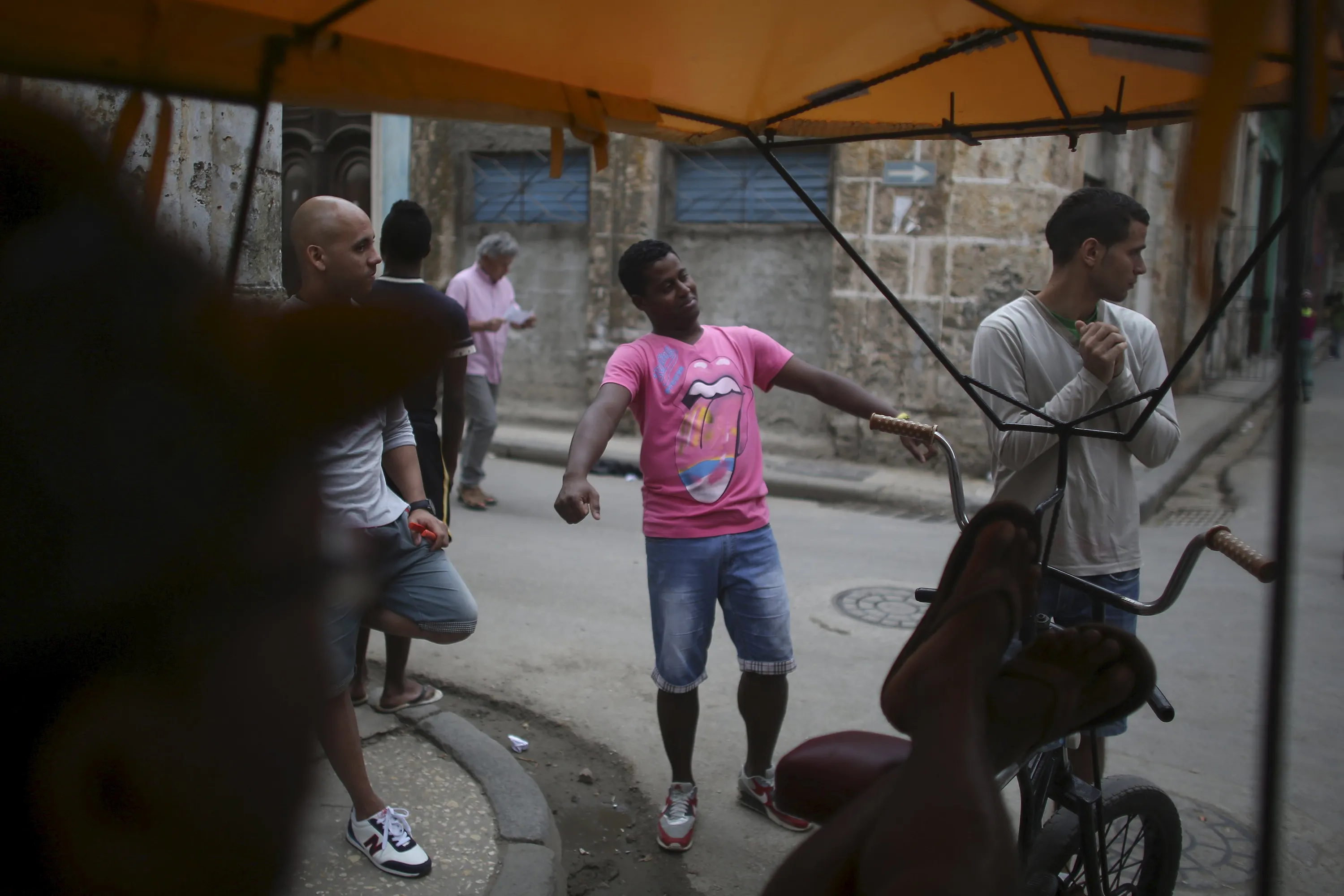 Pedicab driver Roberto Vazquez, 24, (C) wears a T-shirt with The Rolling Stones symbol as he chats with friend in downtown Havana, Cuba March 21, 2016. (Photo by Alexandre Meneghini/Reuters)