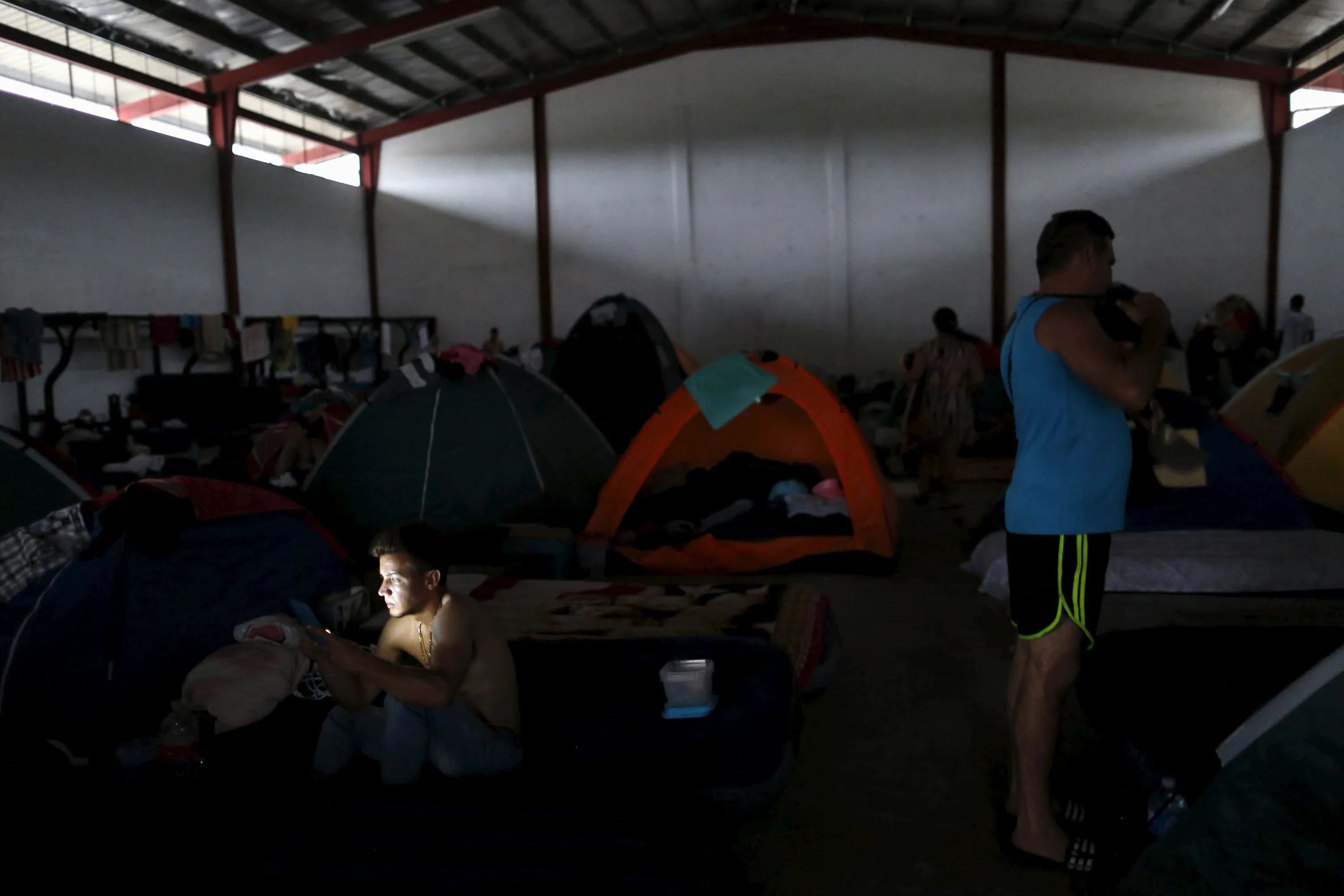 A Cuban migrant looks at his mobile phone next to tents in a provisional shelter in Paso Conoa, at the border with Costa Rica March 20, 2016. (Photo by Carlos Jasso/Reuters)