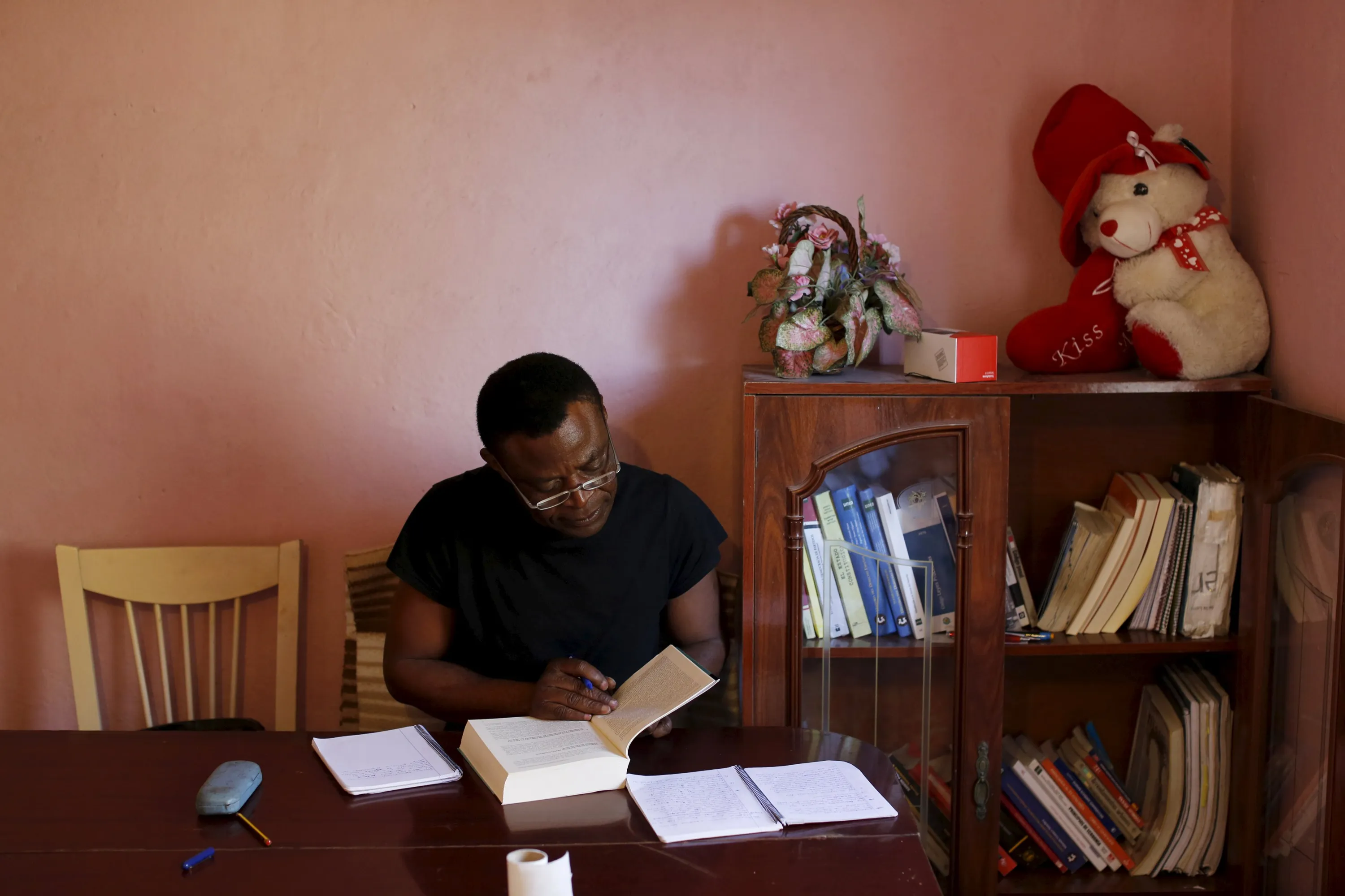 Howard Jackson, a Liberian migrant, studies at his home in the Andalusian capital of Seville, southern Spain March 11, 2016. (Photo by Marcelo del Pozo/Reuters)