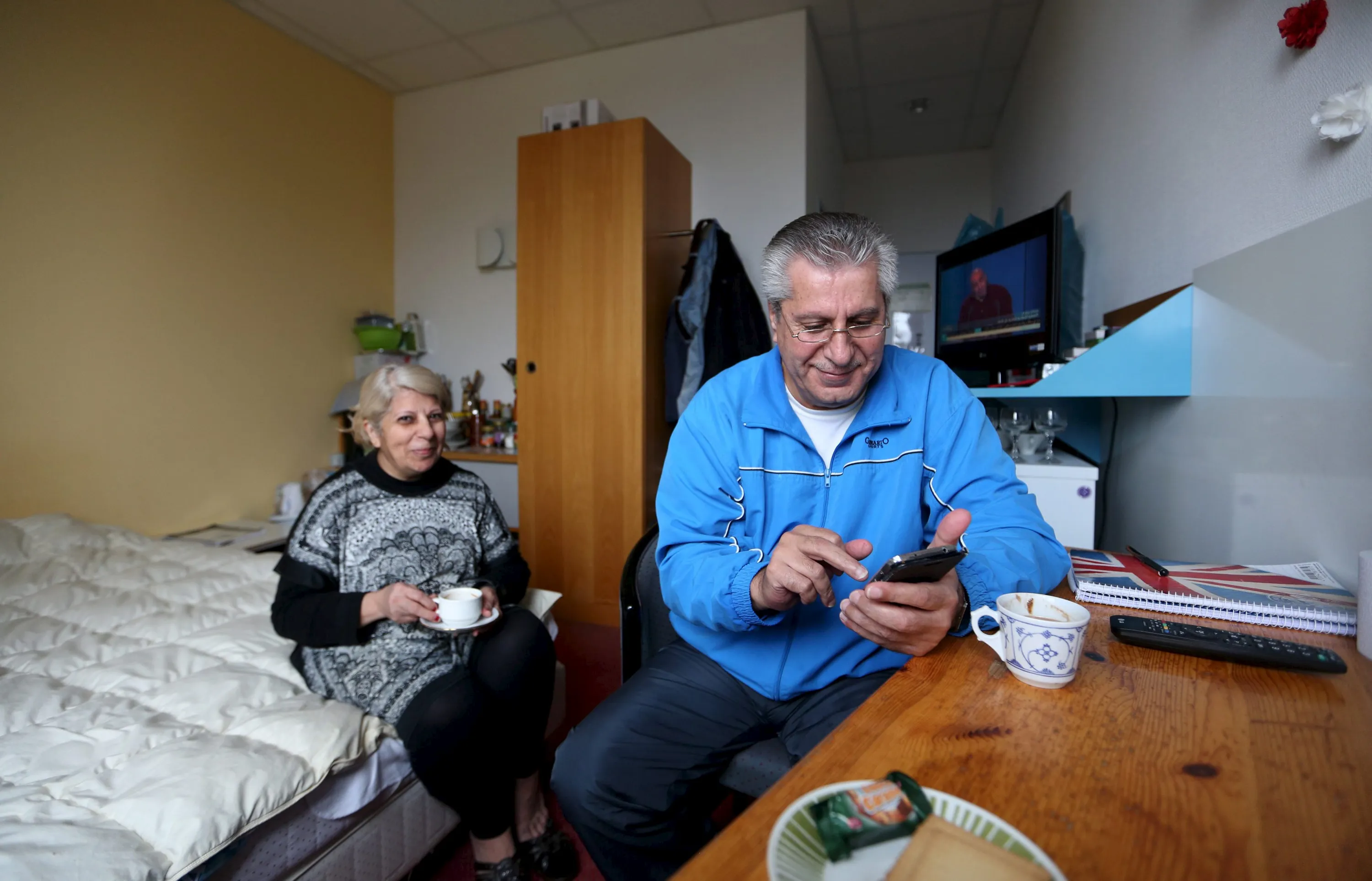 Hassan and Hannahbakar (L) Amrico of Syria sit in their room of the accommodation for migrants “Spree Hotel” in Bautzen, Germany, March 22, 2016. (Photo by Ina Fassbender/Reuters)