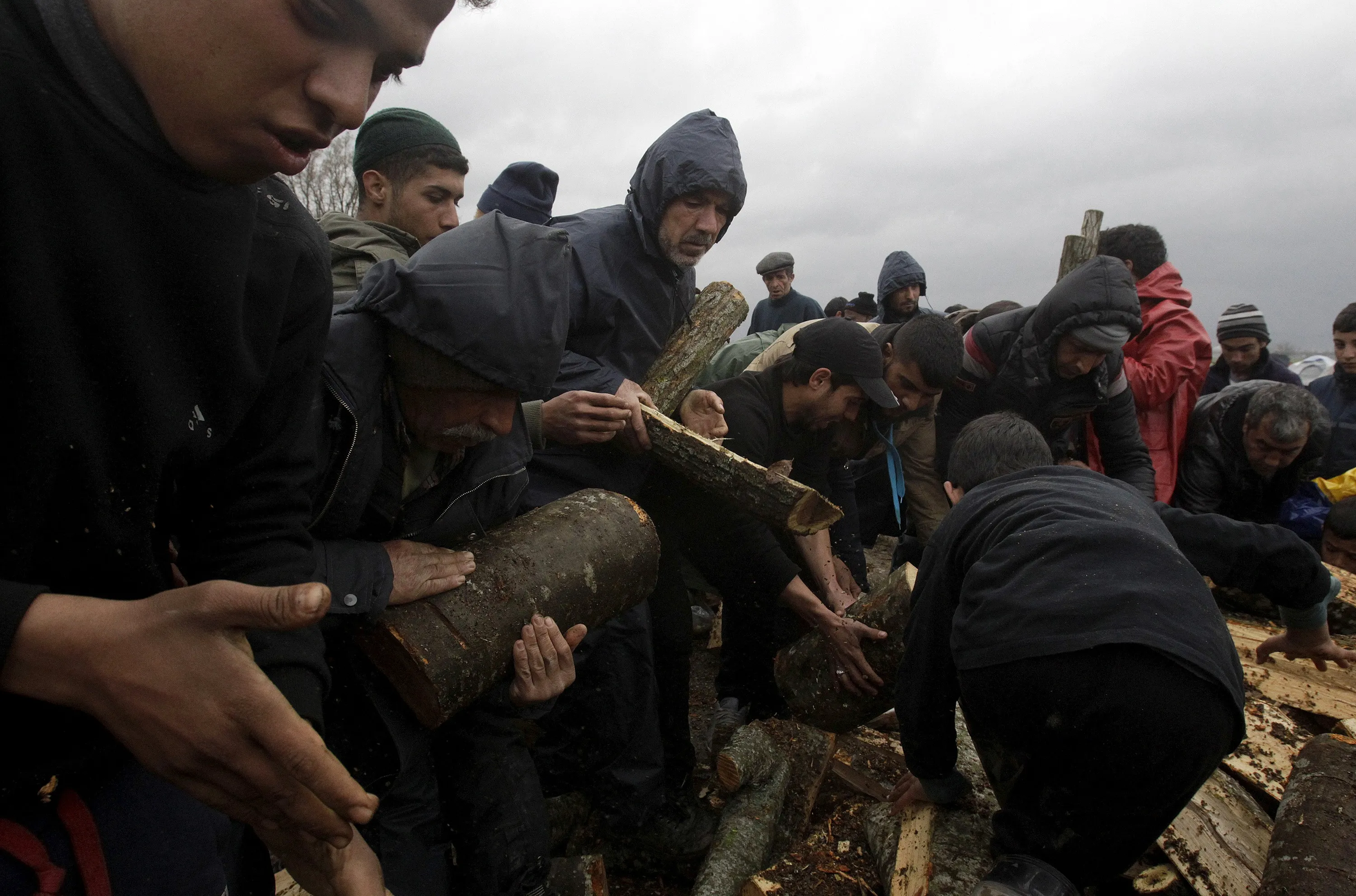 Refugees and migrants gather logs from a shipment of firewood at a makeshift camp at the Greek-Macedonian border, near the village of Idomeni, Greece, March 23, 2016. (Photo by Alexandros Avramidis/Reuters)