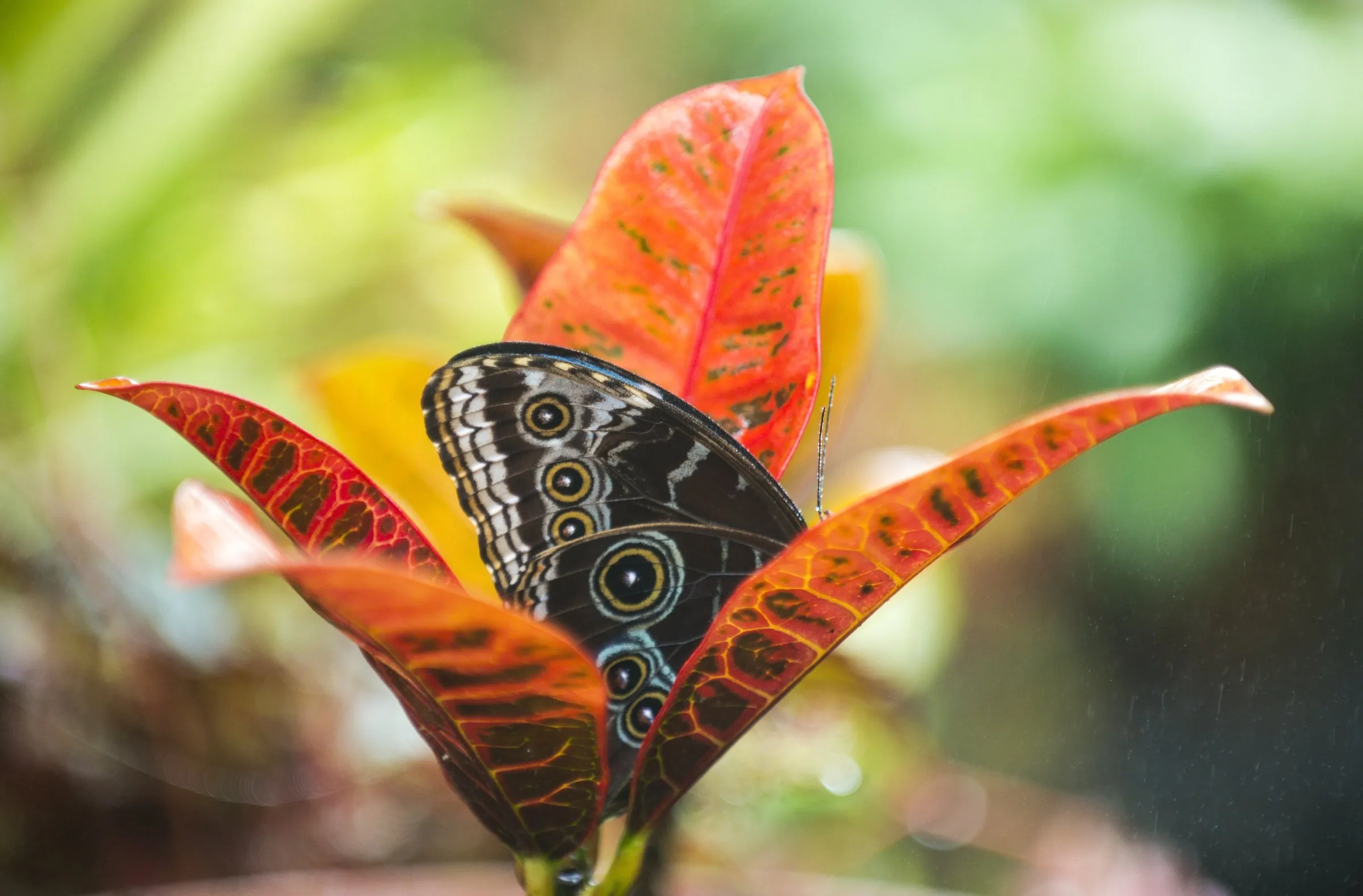 In this Tuesday, March 22, 2016 photo, a giant owl butterfly lands inside a plant at the Dow Gardens' Butterflies in Bloom exhibit in Midland, Mich. (Photo by Jacob Hamilton/The Saginaw News-MLive.com via AP Photo)