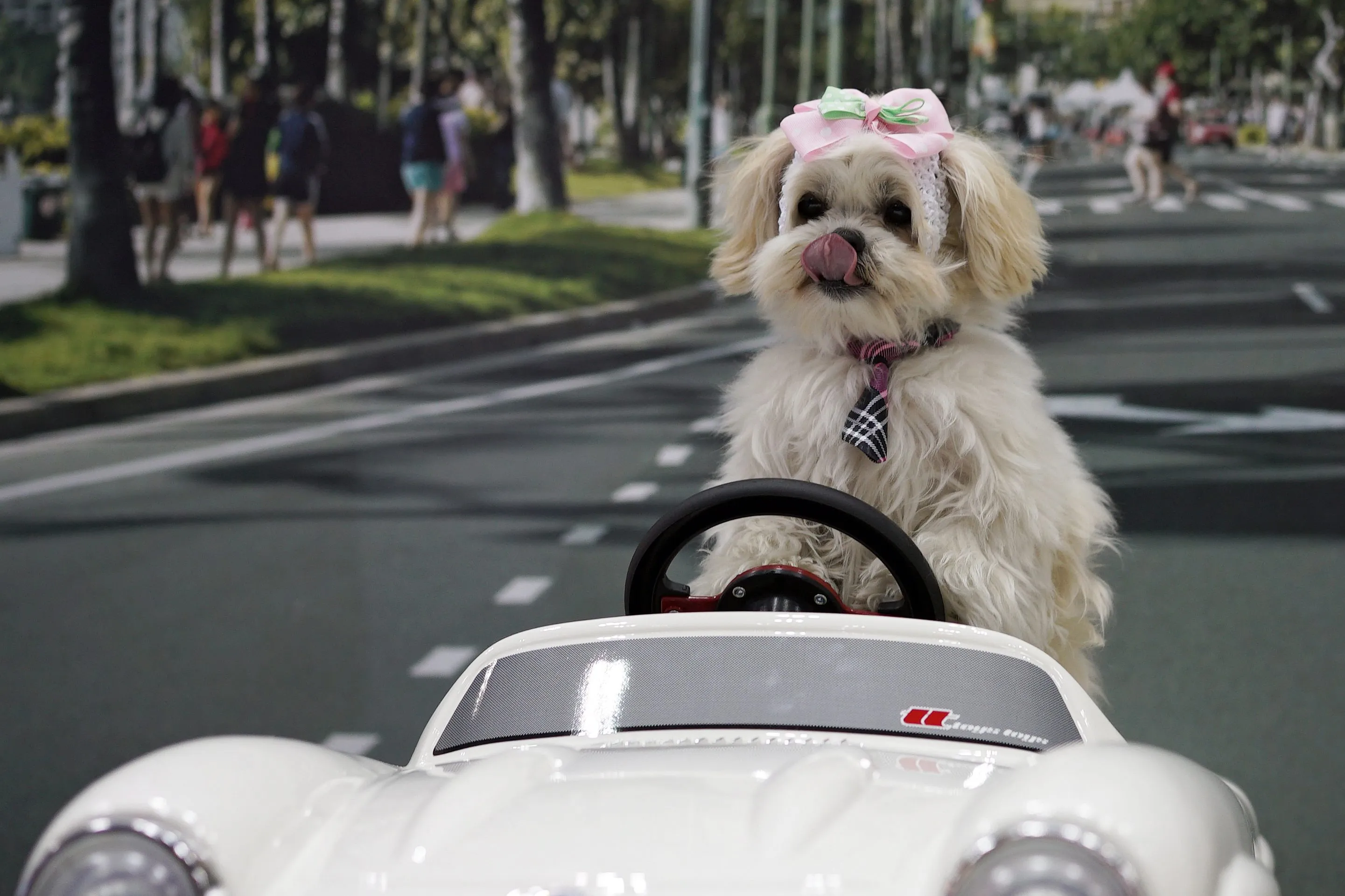 A dog sits on a miniature car for photographs at the “Interpets” international pet fair in Tokyo, Japan, 31 March 2016. Some 350 exhibitors are presenting their products to business visitors and pet lovers until 03 April at the event, which is the largest international trade fair in the Japanese pet market. (Photo by Franck Robichon/EPA)