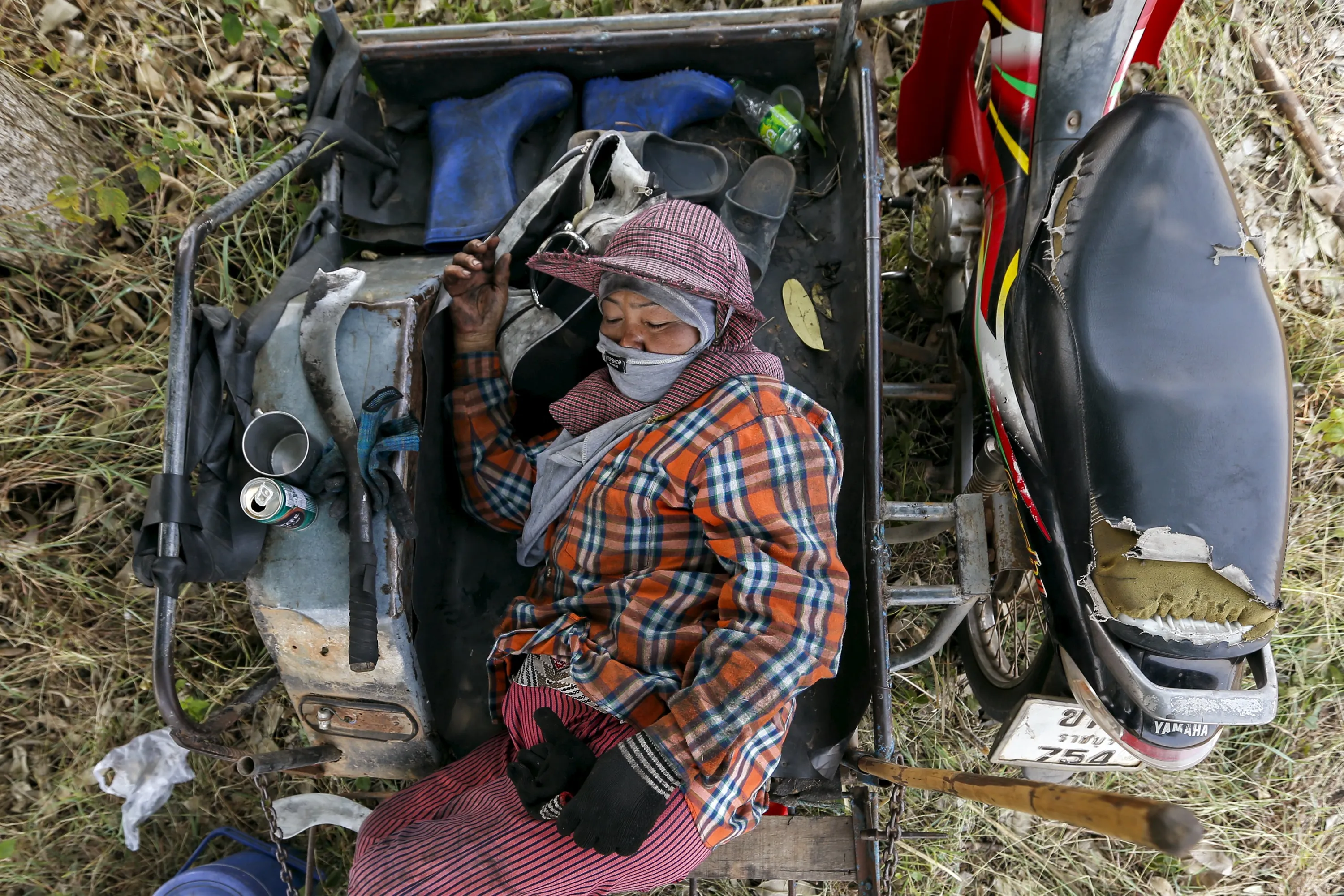 A sugar cane worker takes a nap after harvesting a field at Pakchong district in Ratchaburi province, Thailand March 22, 2016. (Photo by Jorge Silva/Reuters)