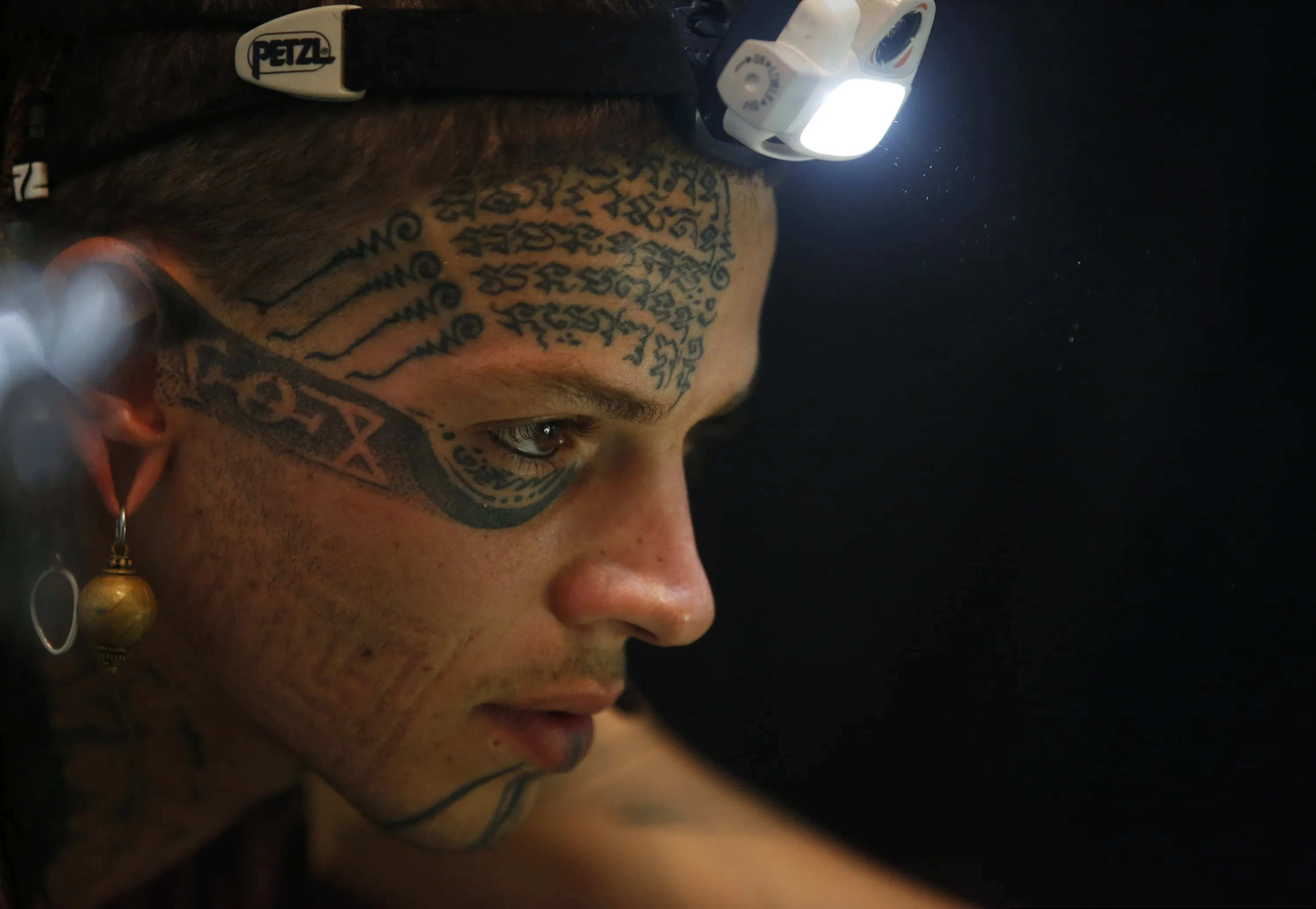 A tattoo artist works on a tattoo during the Nepal Tattoo Convention in Kathmandu, Nepal, April 1, 2016. (Photo by Navesh Chitrakar/Reuters)