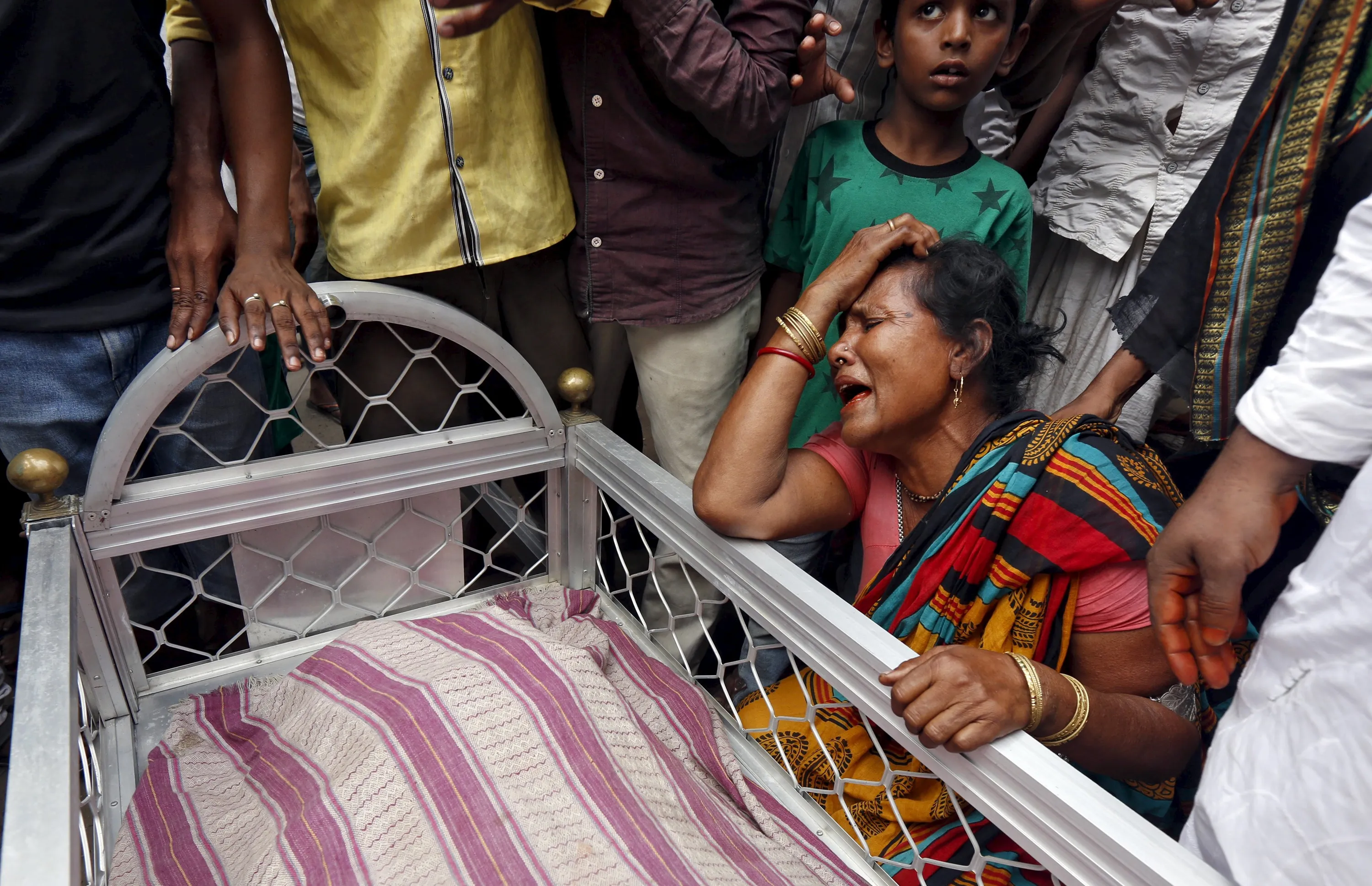 A woman mourns next to the body of Mohammad Ramzani, a cycle rickshaw driver who died after an under-construction flyover collapsed on Thursday, in Kolkata, April 1, 2016. (Photo by Rupak De Chowdhuri/Reuters)