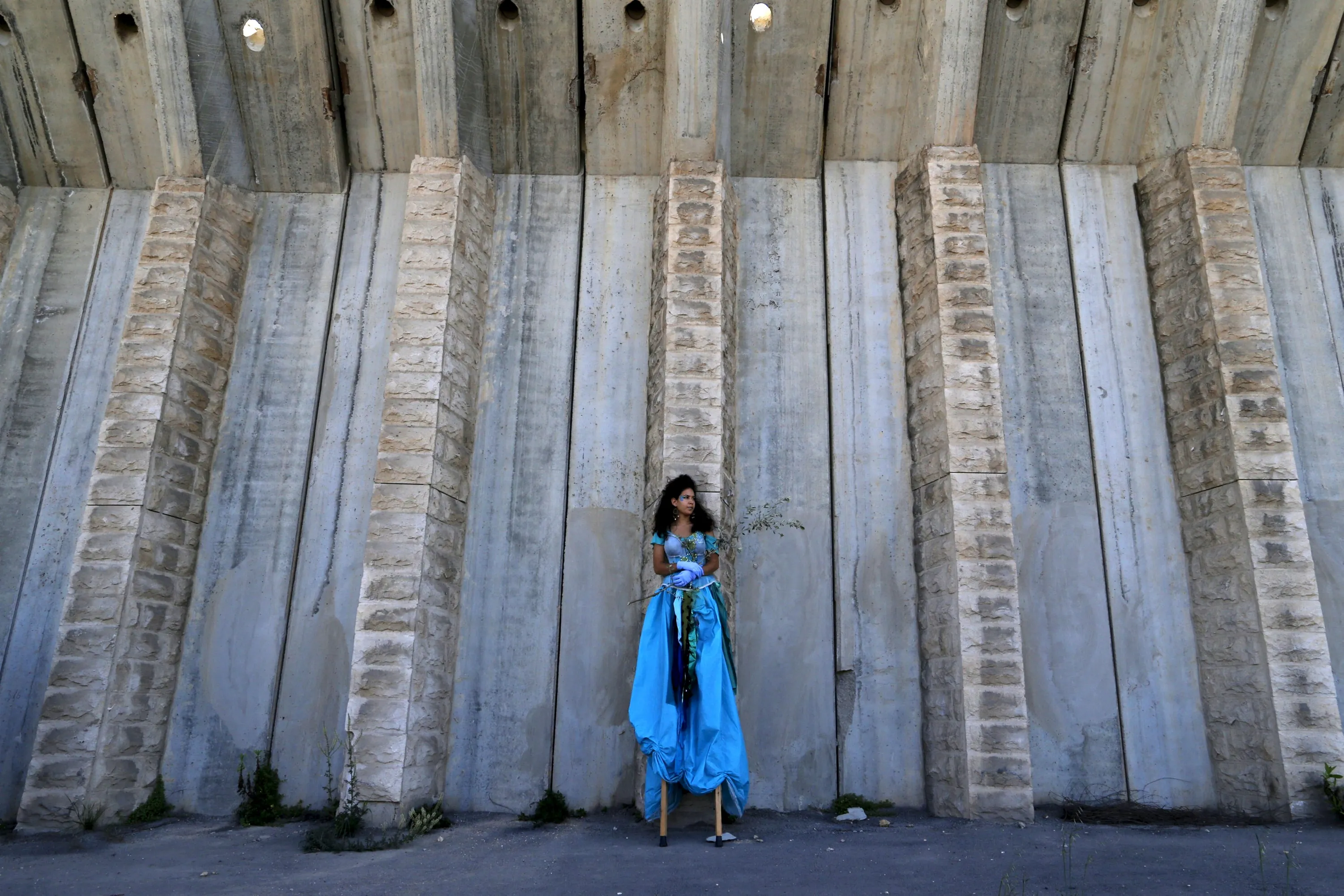 An Israeli demonstrator stands in front of a section of the Israeli barrier during a Land Day protest by Palestinian and Israeli activists, in the West Bank city of Bethlehem April 1, 2016. (Photo by Ammar Awad/Reuters)