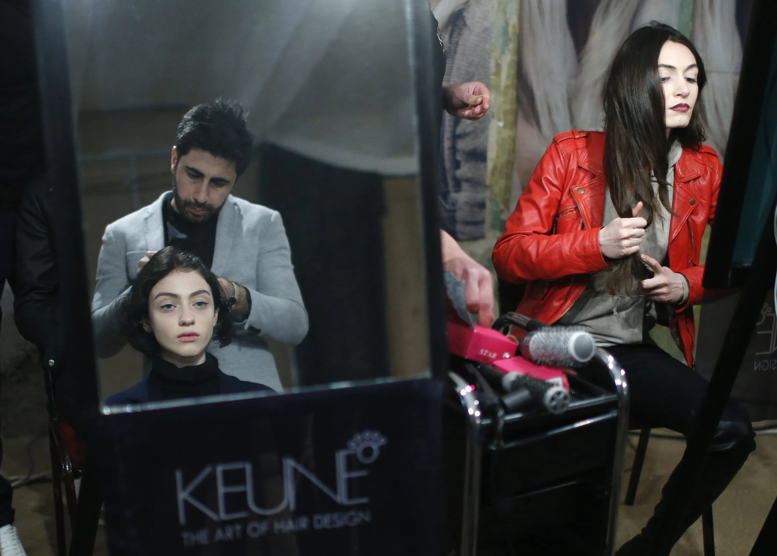 A model has her hair done during Tbilisi Fashion Week in Tbilisi, Georgia, April 1, 2016. (Photo by David Mdzinarishvili/Reuters)