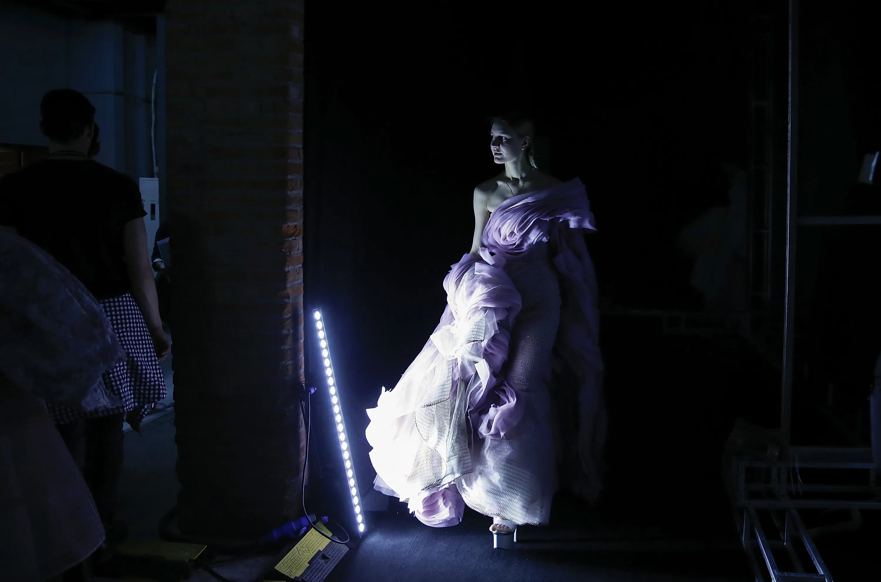 A model waits backstage during the JUSERE show in the Mercedes-Benz China Fashion Week Autumn/Winter 2016/2017 at 751D.PARK on March 30, 2016 in Beijing, China. (Photo by Lintao Zhang/Getty Images)
