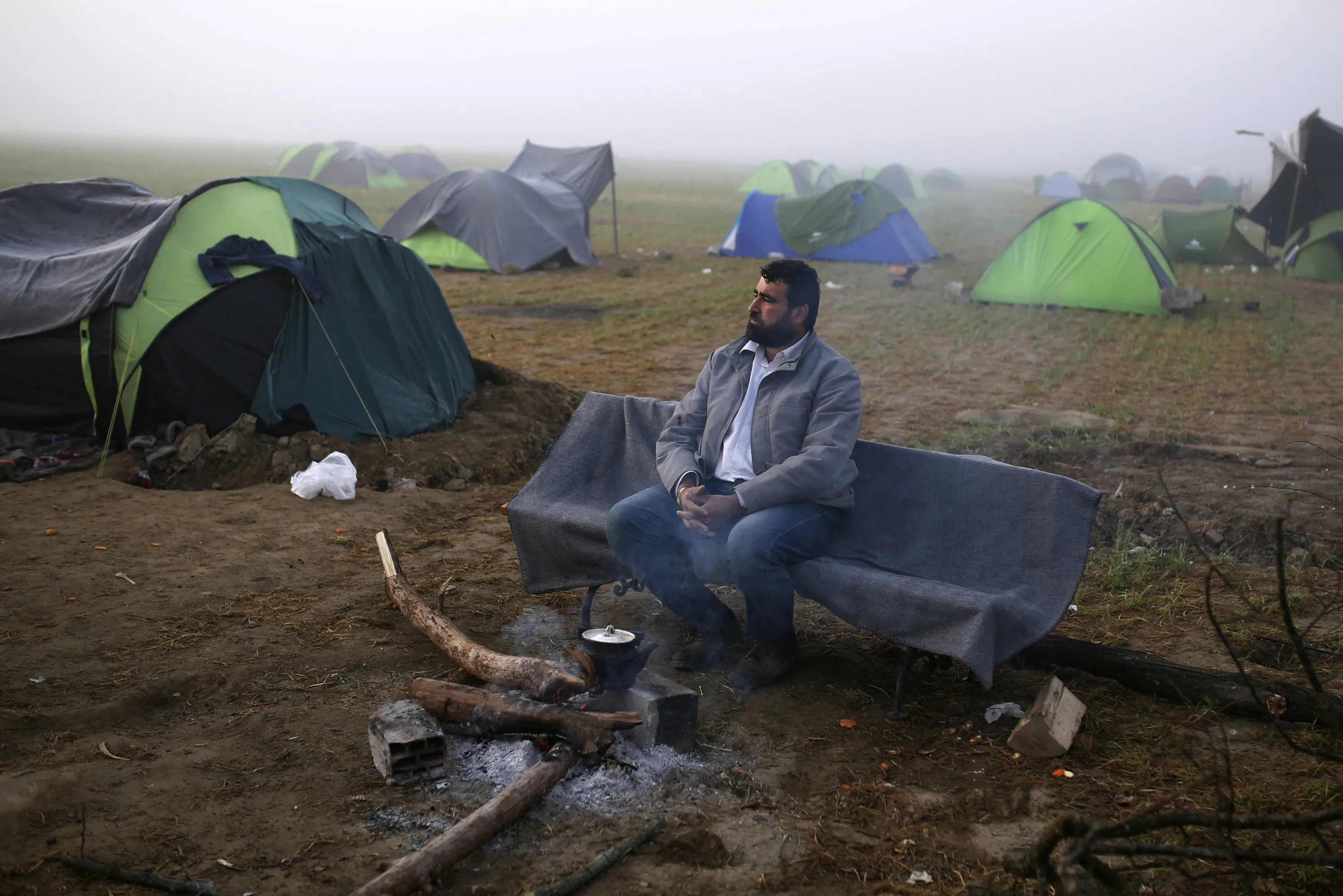 A man sits on the bench at a makeshift camp for migrants and refugees at the Greek-Macedonian border near the village of Idomeni, Greece, April 1, 2016. (Photo by Marko Djurica/Reuters)