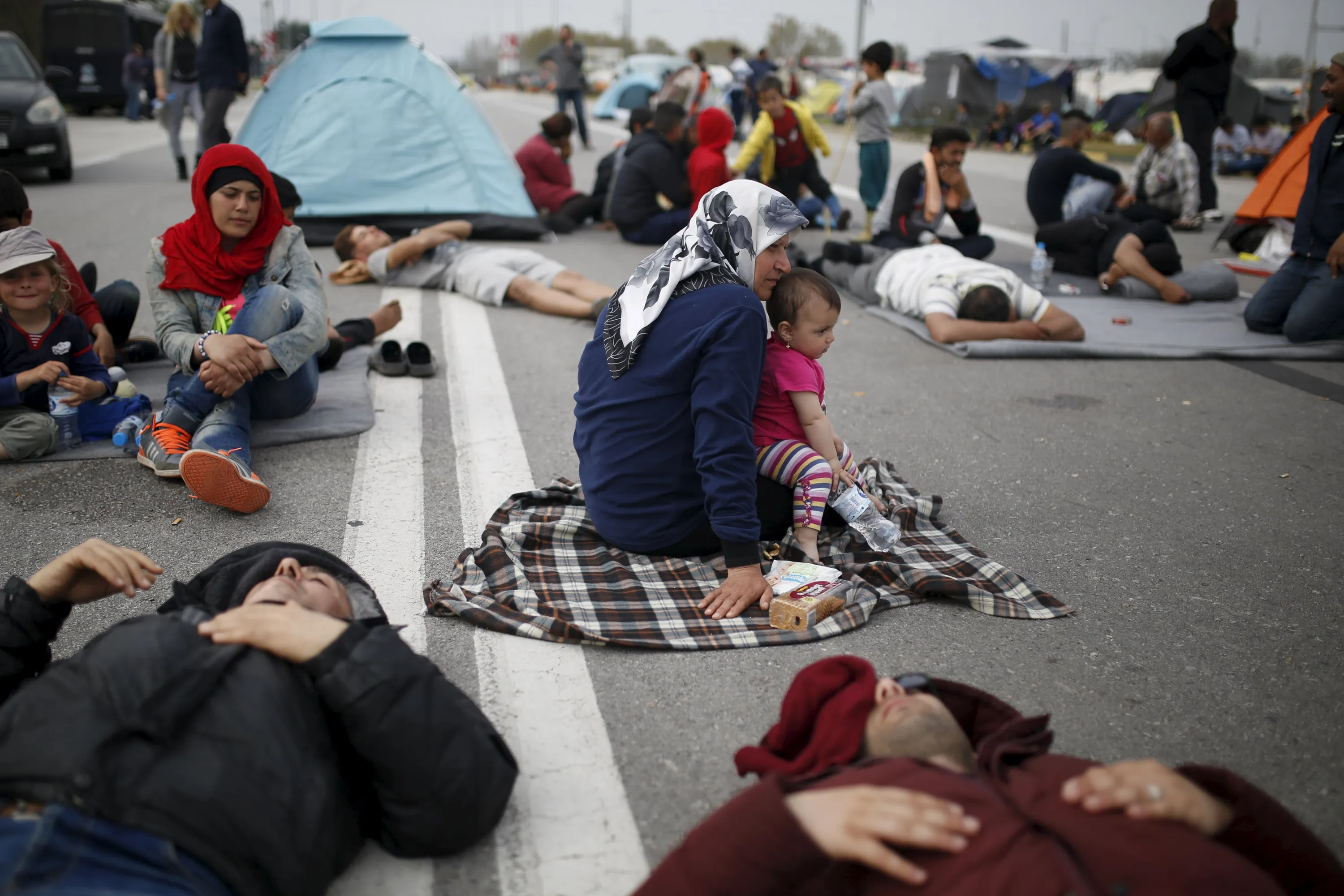 Migrants and refugees block the highway during a protest near the Greek-Macedonian border, near the town of Polykastro, Greece, April 2, 2016. (Photo by Marko Djurica/Reuters)