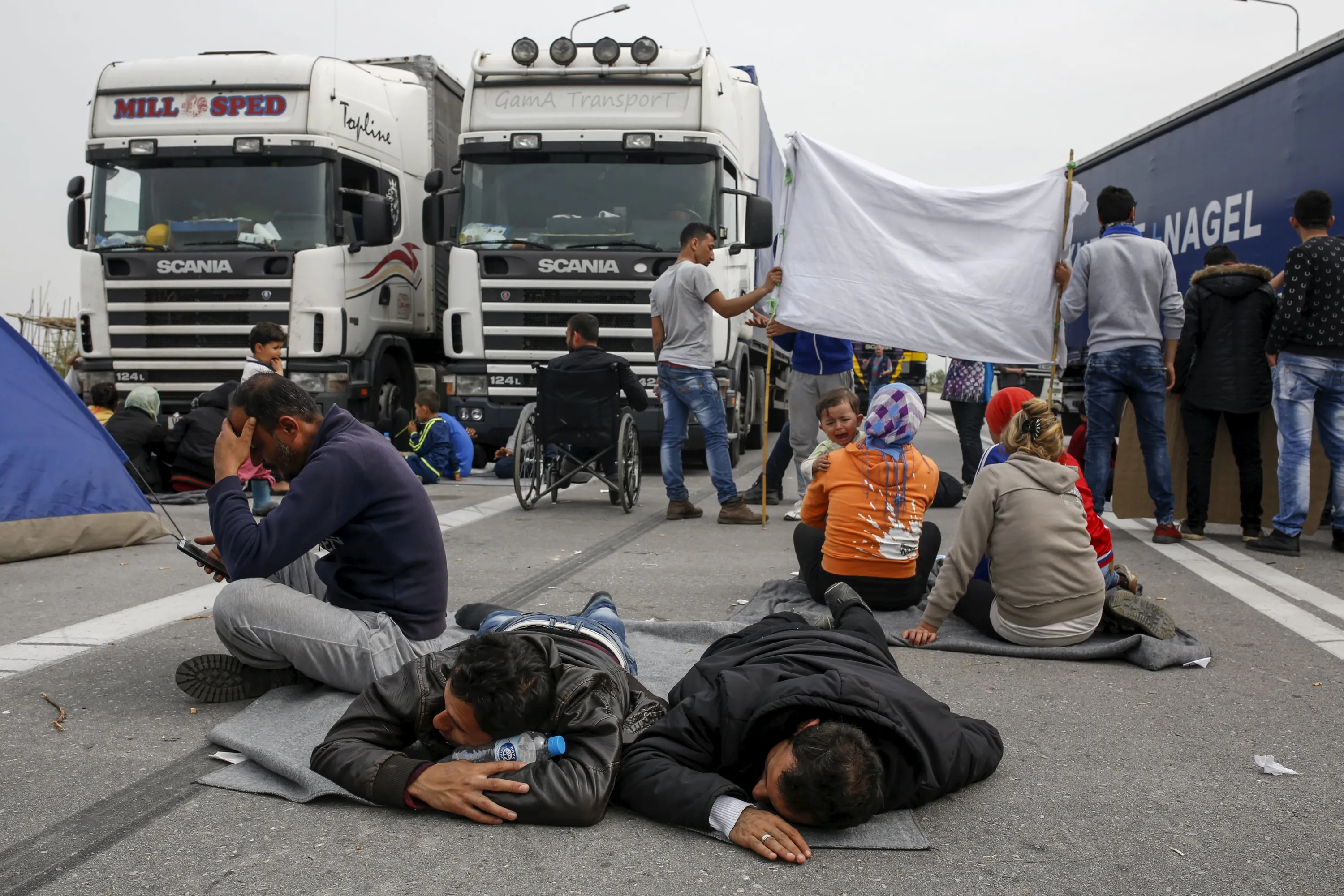 Migrants and refugees block the highway during a protest near the Greek-Macedonian border, near the town of Polykastro, Greece, April 2, 2016. (Photo by Marko Djurica/Reuters)