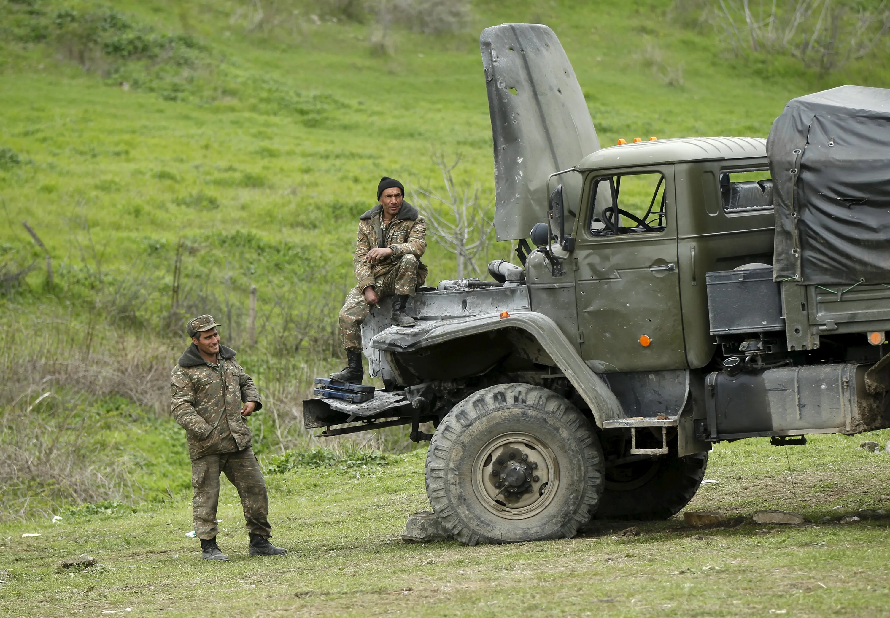 Servicemen of the self-defense army of Nagorno-Karabakh rest at their position in the village of Talish April 6, 2016. (Photo by Reuters/Staff)