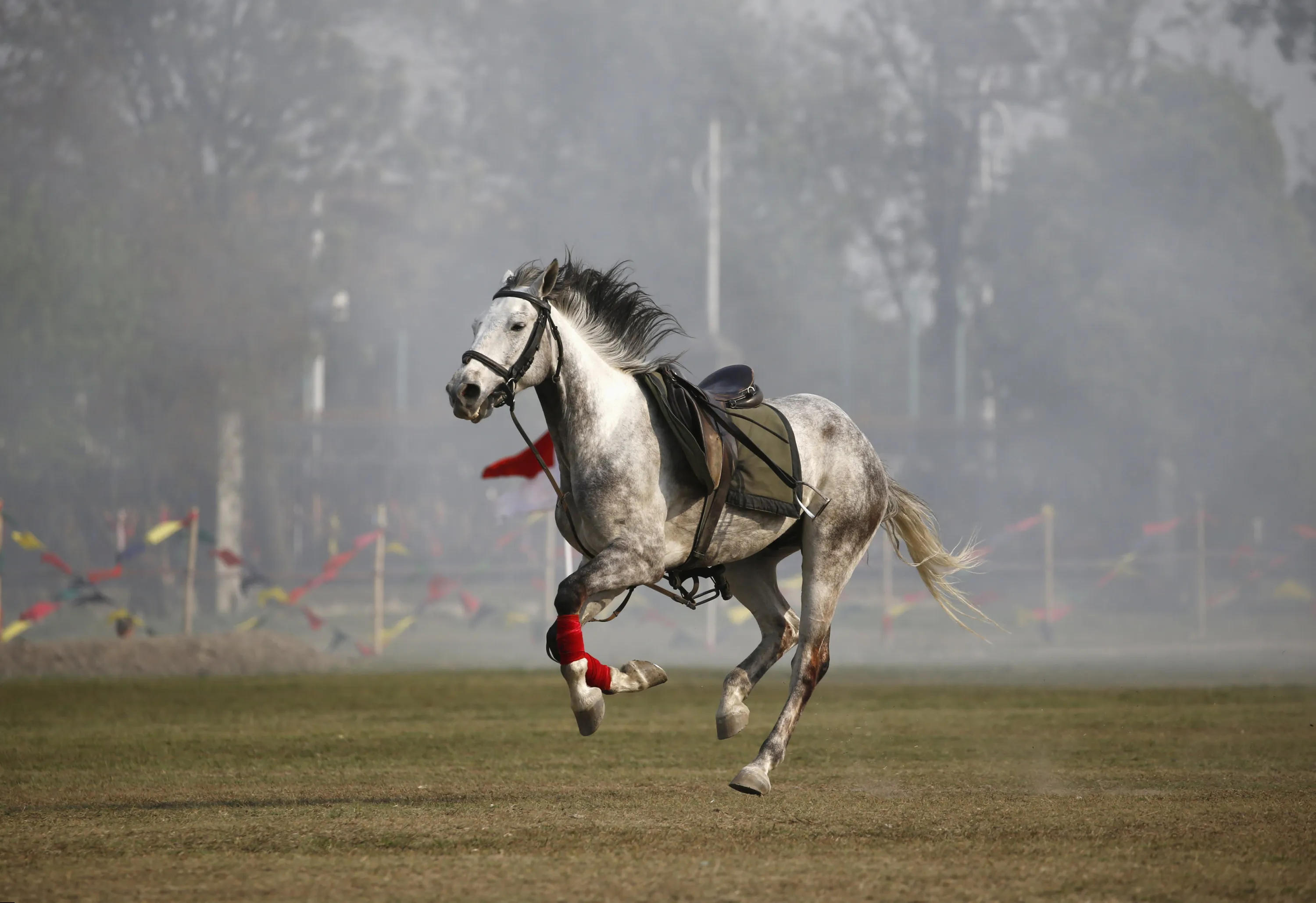 A horse runs along the field after a solder (unseen) fell from it during the “Ghodejatra” Horse Race festival, which is organised by the Nepal Army, in Kathmandu, Nepal, April 7, 2016. (Photo by Navesh Chitrakar/Reuters)