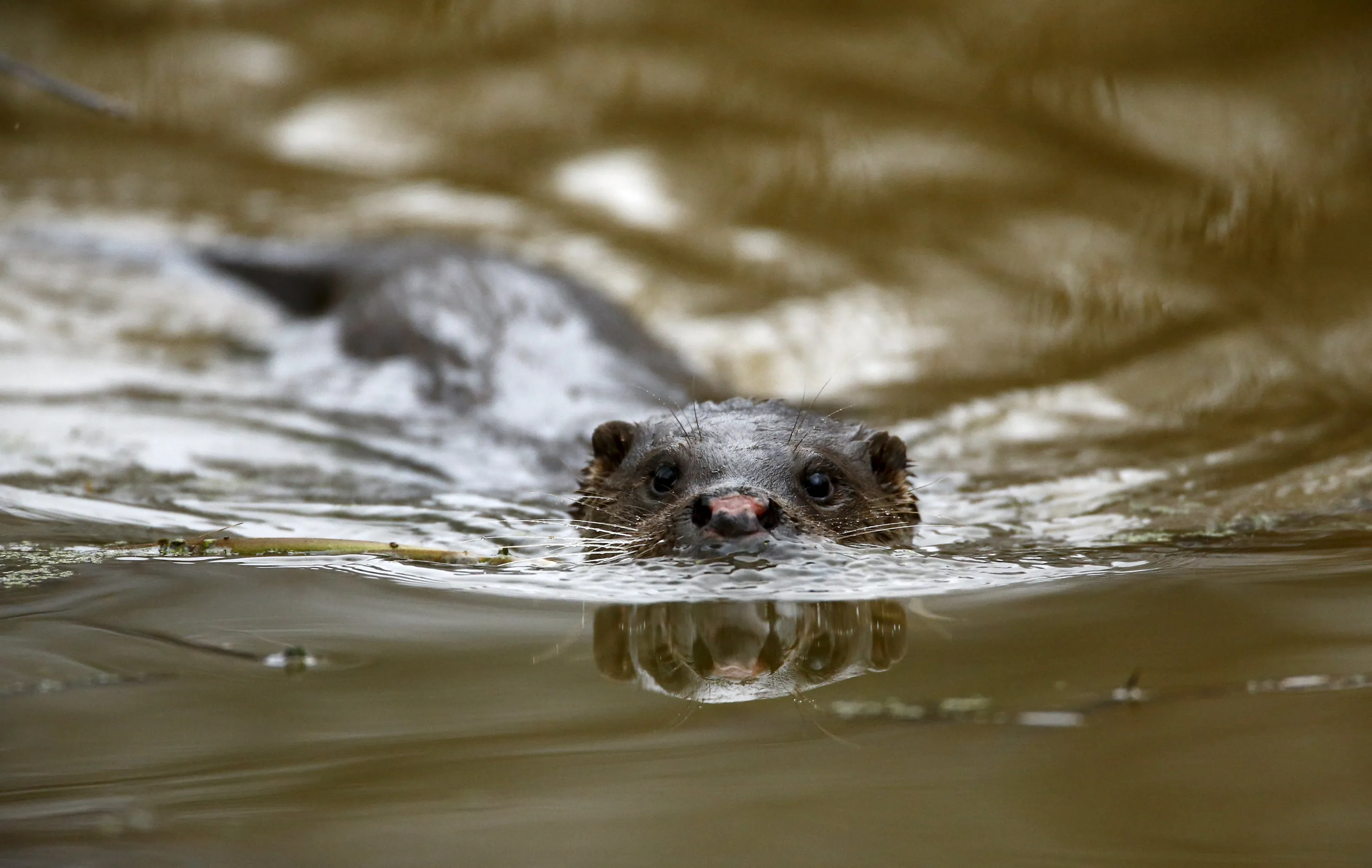 An otter swims in a river in the 30 km (19 miles) exclusion zone around the Chernobyl nuclear reactor in the abandoned village of Pogonnoe, Belarus, March 13, 2016. (Photo by Vasily Fedosenko/Reuters)