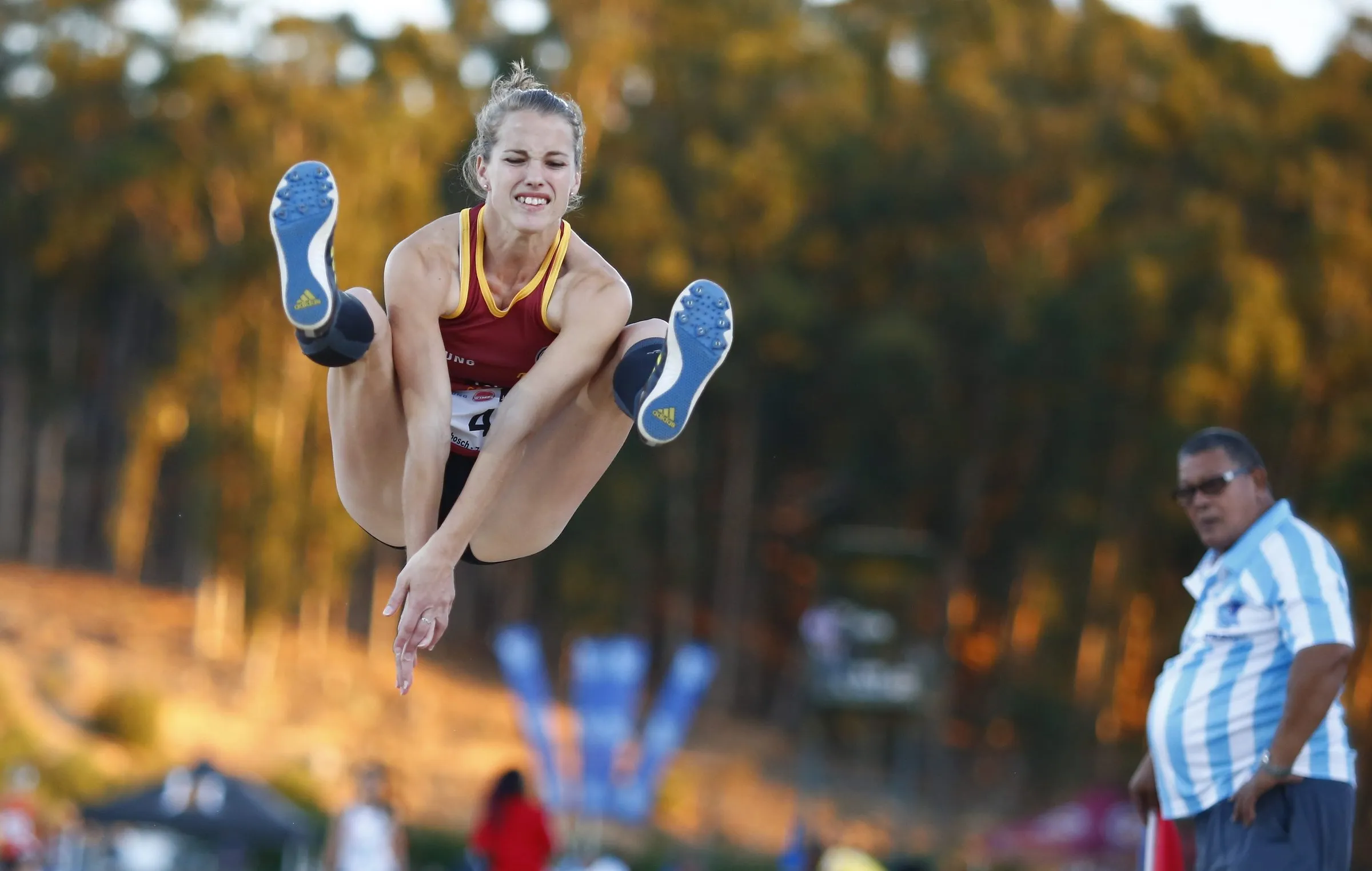 South African Samantha Pretorius cometes in the Women's Long Jump during the Varsity Athletics series at Coetzenburg Athletics Stadium in Stellenbosch, South Africa, 07 April 2016. This final event in the Varsity Athletics series for 2016 provided an oportunity for top South African Rio Olympic qualifying athletes to race. (Photo by Nic Bothma/EPA)