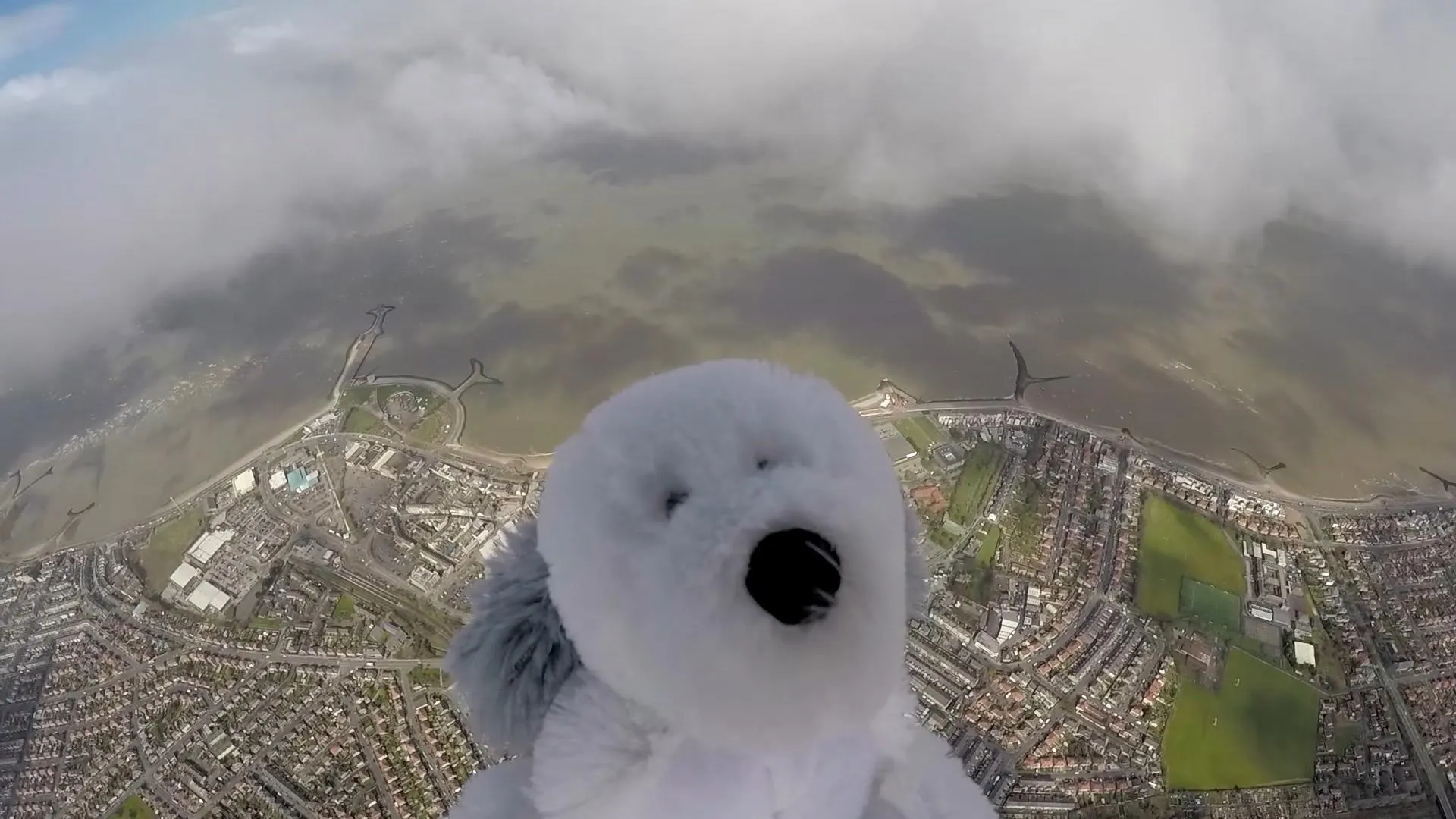 Sam the cuddly toy dog takes off from Morecambe England Tuesday April 5, 2016 attached to a special camera and a helium balloon. (Photo by Morecambe Bay Community Primary School and English Lakes Hotels Resorts & Venues via AP Photo)