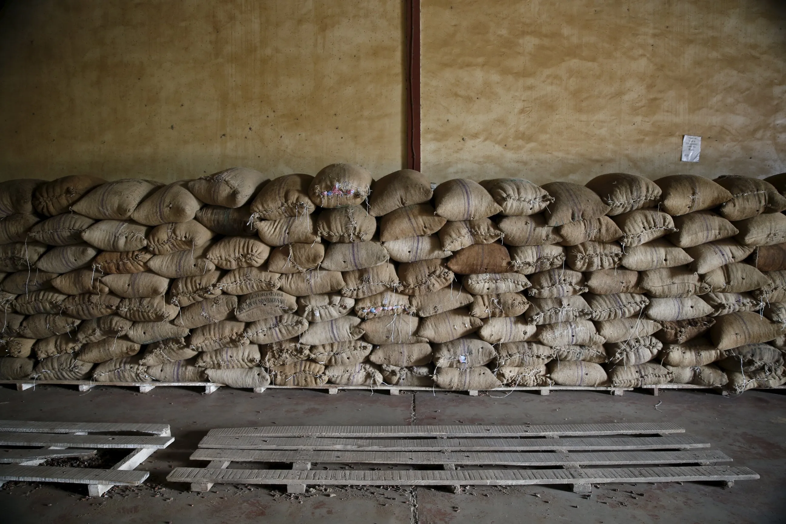 Bags loaded with cocoa are arranged in a warehouse at a cocoa processing factory in Ile-Oluji village in Ondo state, southwest Nigeria March 29, 2016. (Photo by Akintunde Akinleye/Reuters)