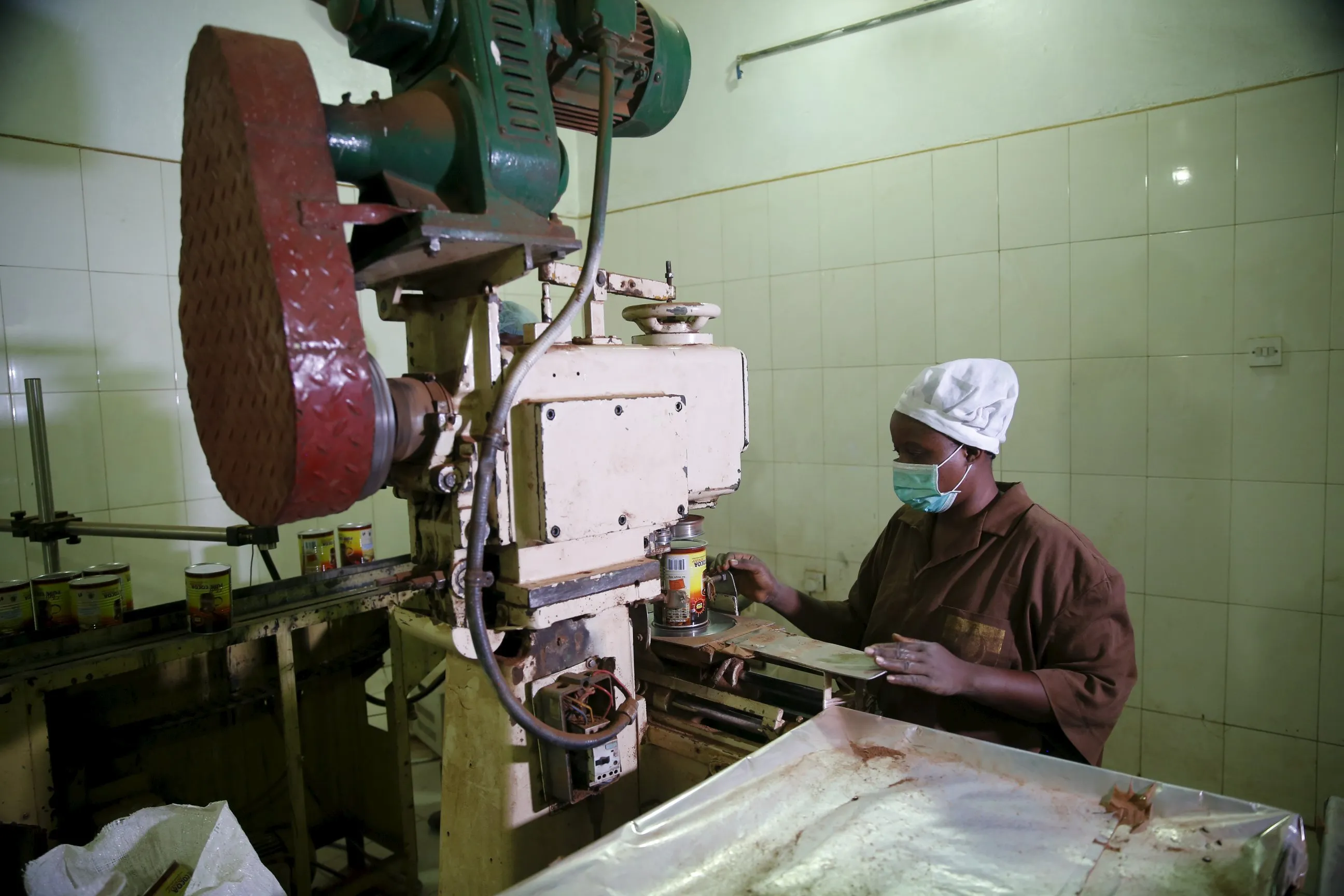 A woman works on a machine at the Cocoa Product processing factory at Ile-Oluji village in Ondo state, southwest Nigeria March 30, 2016. (Photo by Akintunde Akinleye/Reuters)