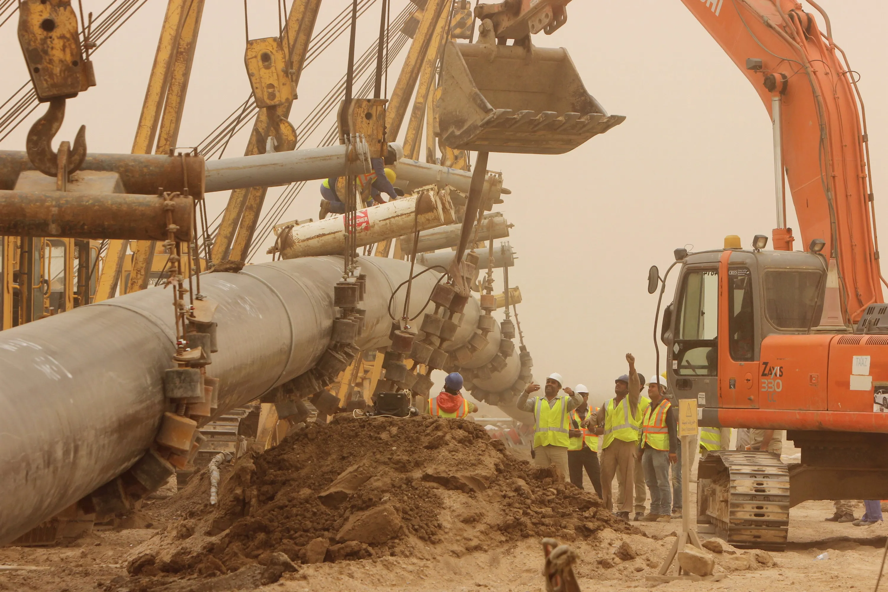 Workers set up a natural gas pipeline during a dust storm at Iraq's border with Iran in Basra, southeast of Baghdad, April 12, 2016. (Photo by Essam Al-Sudani/Reuters)