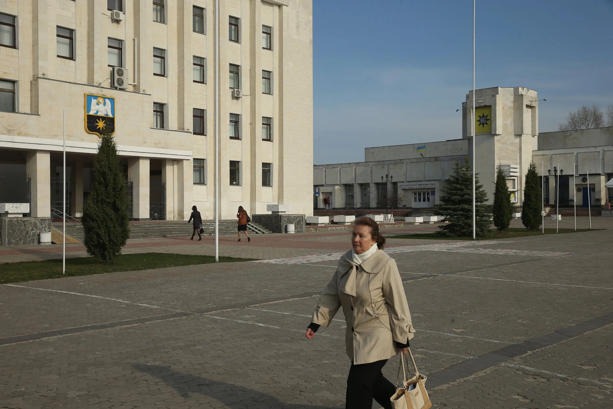 A woman walks past an administrative building, April 8, 2016, in Slavutych, Ukraine. Slavutych is a new town built in the years after the Chernobyl accident to replace Pripyat, the town that had previously housed Chernobyl workers and their families and was abandoned due to radioactive contamination. (Photo by Sean Gallup/Getty Images)