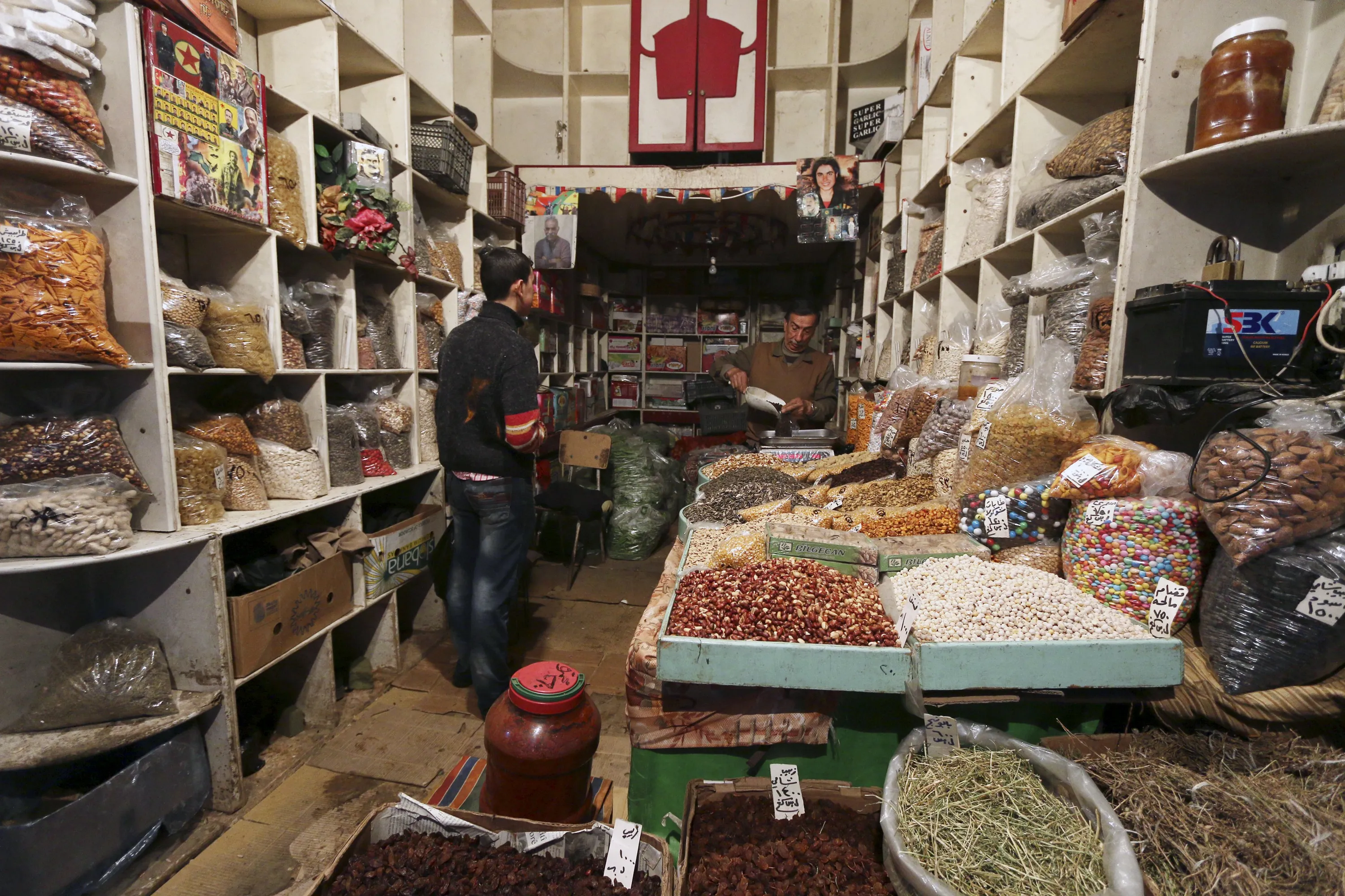 A herbs and nuts vendor works inside his shop in Qamishli, Syria April 11, 2016. (Photo by Rodi Said/Reuters)