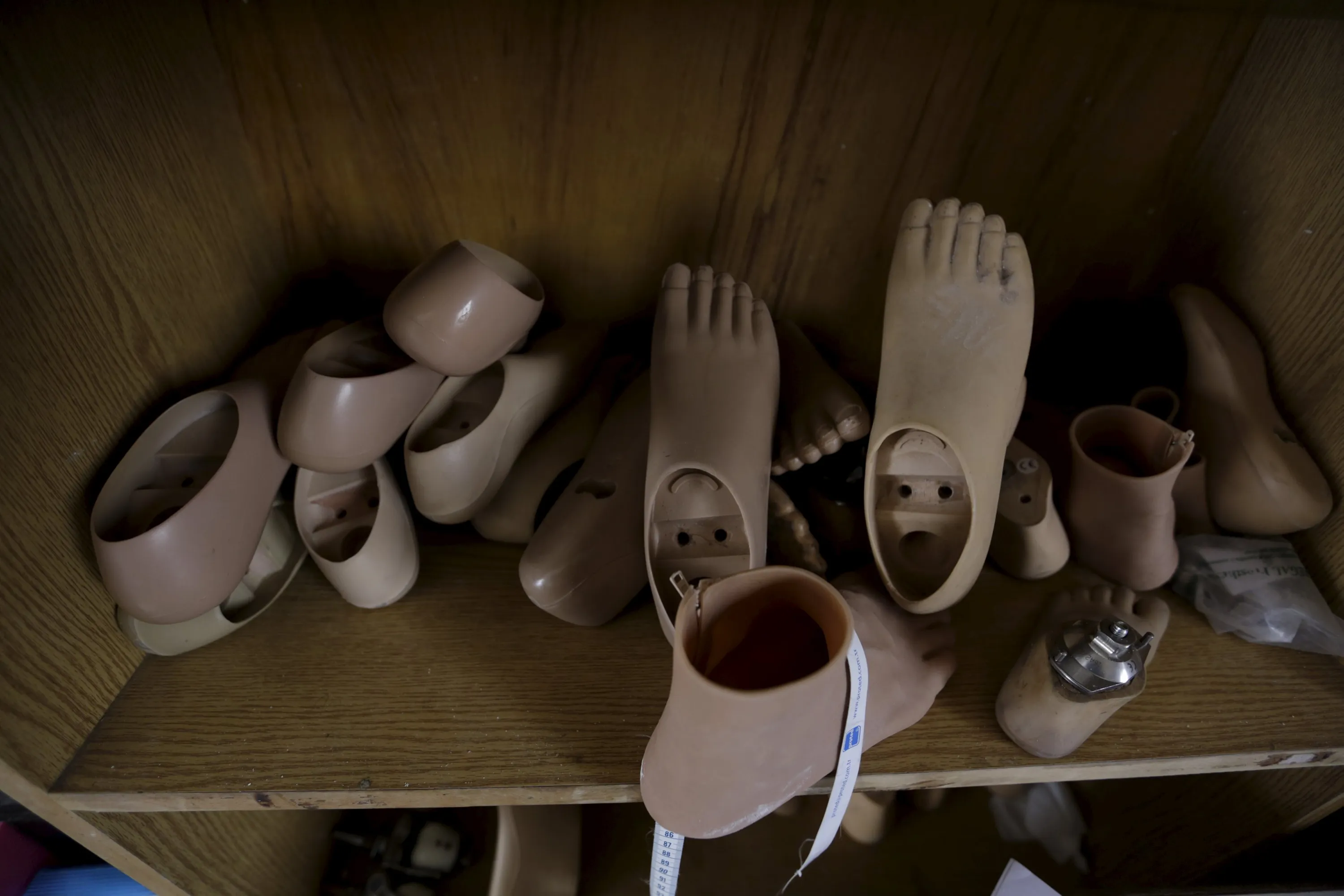 Artificial limbs are stacked on a shelf inside a mobile truck clinic in the rebel-controlled area of Maaret al-Numan town in Idlib province, Syria March 20, 2016. (Photo by Khalil Ashawi/Reuters)