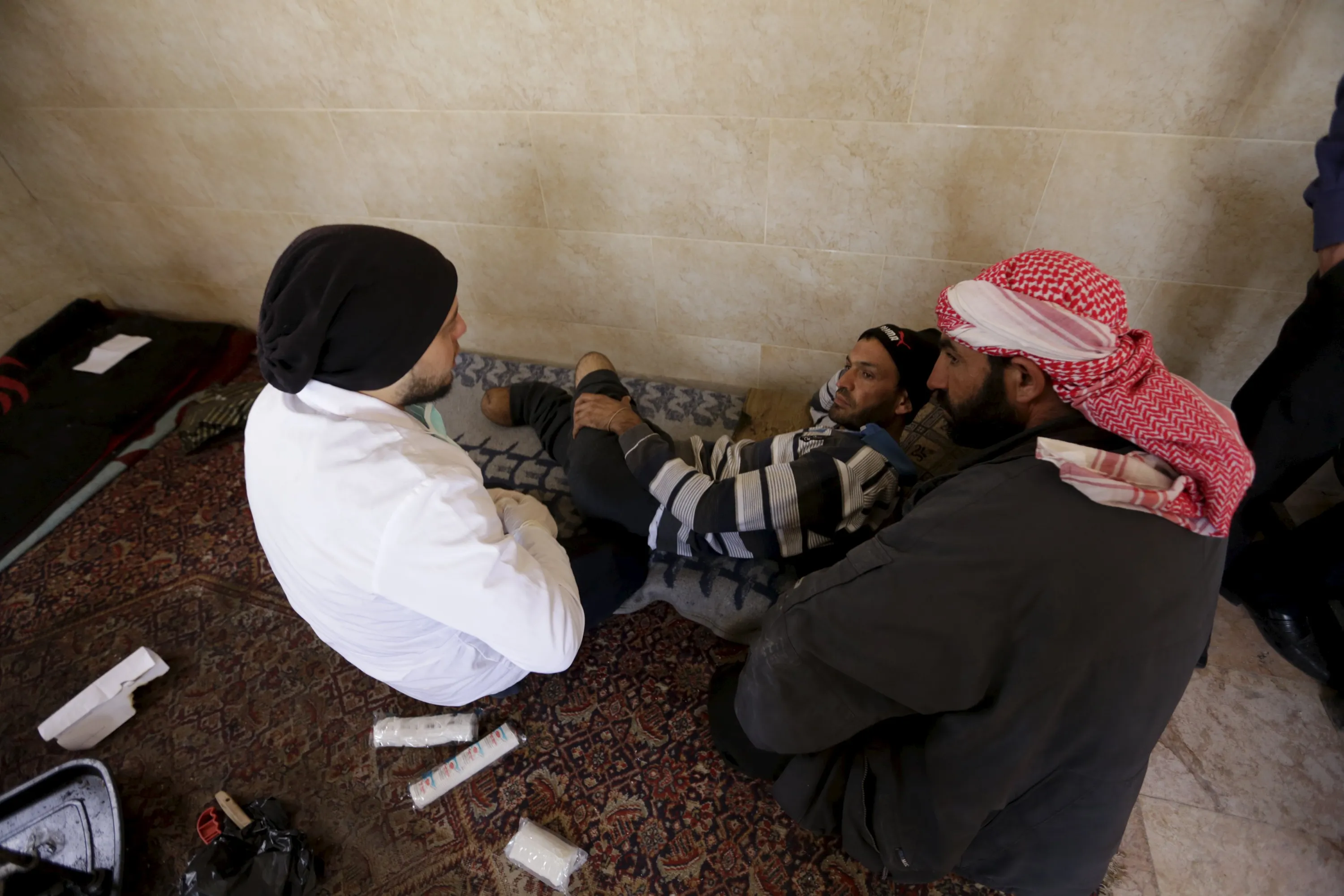 Khamis (L), 24, talks with a man with amputated legs in the rebel-controlled area of Maaret al-Numan town in Idlib province, Syria March 20, 2016. (Photo by Khalil Ashawi/Reuters)